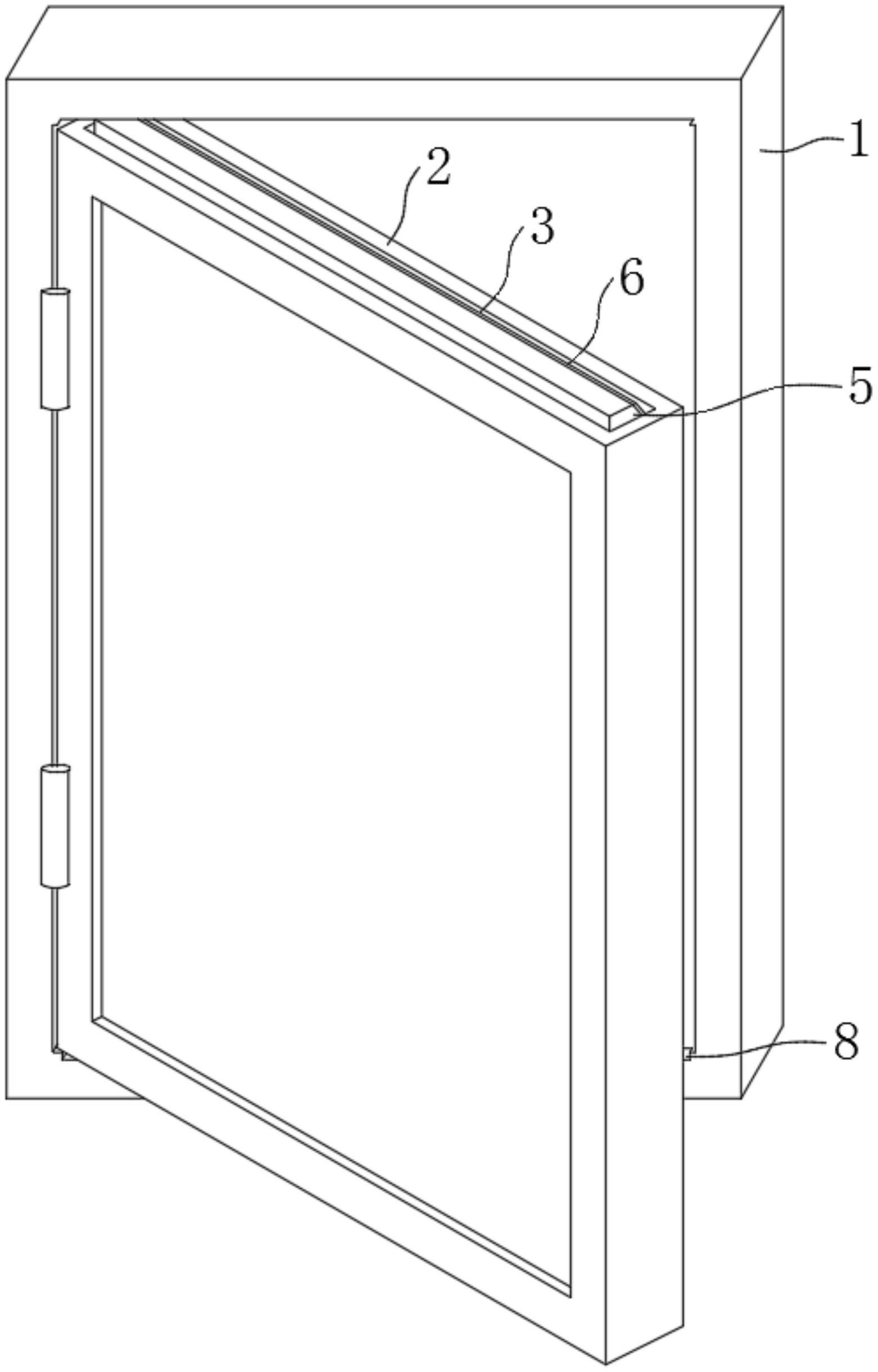本实用新型公开了一种活动式防火窗,涉及防火窗技术领域,包括窗框、窗户,所述窗框内侧的两端皆开设有第二斜面,所述窗户两端的内部皆开设有伸缩槽,所述伸缩槽的固定连接有弹簧,所述弹簧的一端固定连接有防护板,所述防护板的一端开设有第一斜面,所述第一斜面的一端固定连接有防护垫。本实用新型通过设置的防护板、弹簧、防护垫、伸缩槽,由于防护板与伸缩槽通过弹簧构成弹性结构,且防护板靠近窗框的一端设置有与窗框的一端相适配的斜面,使得在窗户关闭时,防护板会在弹簧的作用下做竖直方向的滑动,并使防护板的端部与窗框的端部紧密接触,从而可以实现对窗户与窗框之间的缝隙的封堵。
