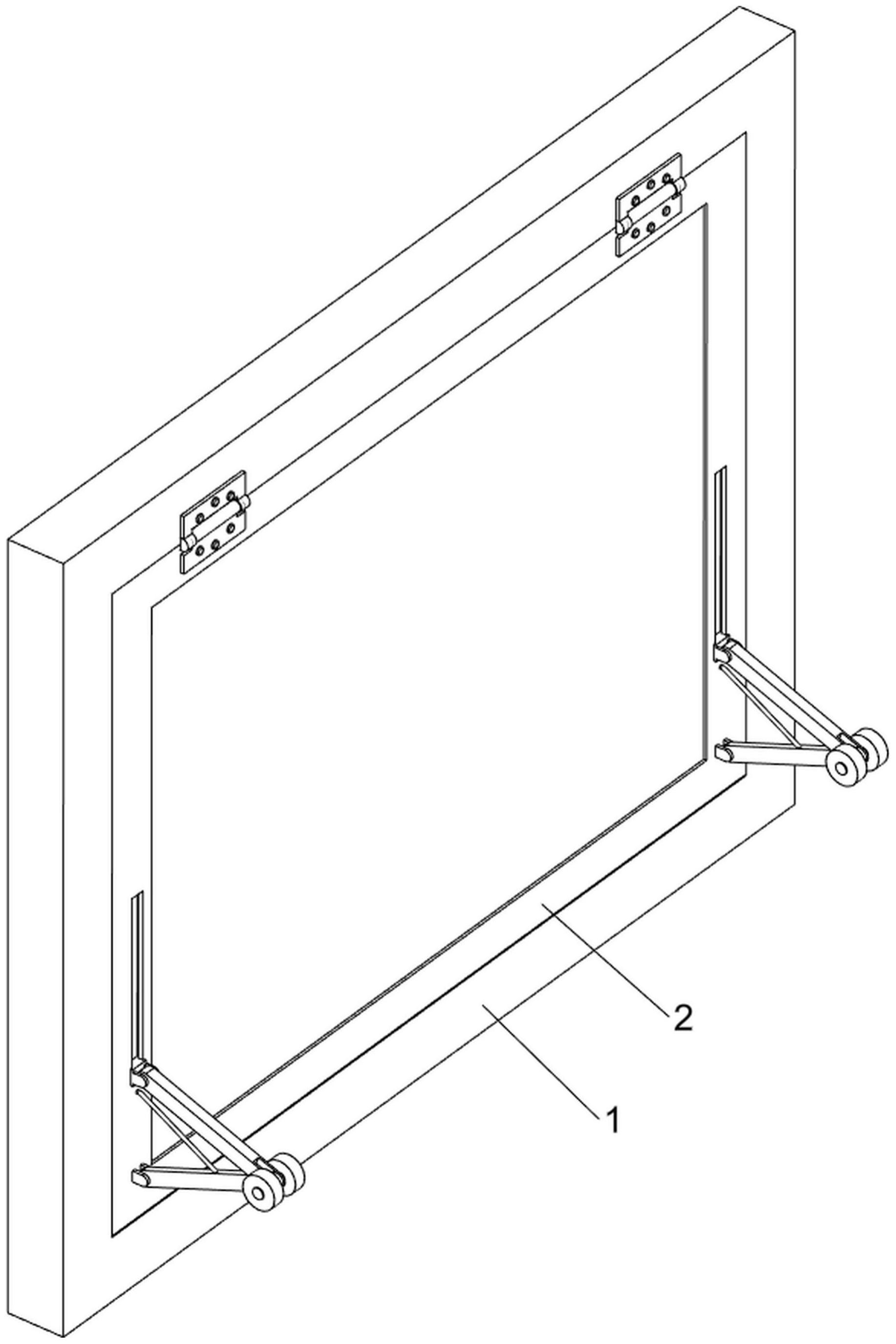 本发明涉及一种防火窗,尤其涉及一种能自动推拉关闭的防火窗。本发明的技术问题:提供一种安全性高,可以有效的阻止火势蔓延的能自动推拉关闭的防火窗。一种能自动推拉关闭的防火窗,包括有框体和防火窗本体,所述防火窗本体转动式安装于所述框体内;伺服电机,所述伺服电机安装于所述框体的上部。本发明通过第一按钮和第二按钮可以手动控制防火窗本体打开和关闭,不需要人们探出头关闭防火窗本体,通过温度传感器可以自动控制防火窗本体关闭,并且可以及时关闭防火窗本体,有效的阻止火势蔓延,通过活动组件和自动组件的配合,可以起到保险作用,在伺服电机故障的情况下,也可以将防火窗本体关闭。
