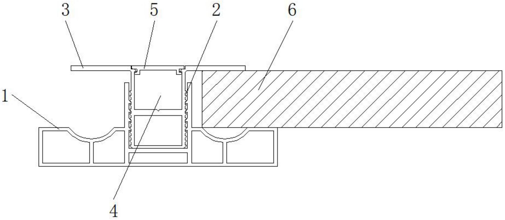 本实用新型公开了一种阳光板接口型材,包括底板,所述底板的顶部开设有安装槽,所述安装槽的内腔活动连接有安装架,所述安装架的顶部开设有插口,所述插口的顶部活动连接有上挡板。本实用新型通过底板、安装槽、安装架、插口、上挡板和阳光板本体的配合,使阳光板接口型材直接采用铝型材制作,无需添加密封胶及密封条,极大的减少了安装难度和制作难度,同时降低了成本,阳光板接口型材在保持功能不变的情况下,将原有的工字型连接结构的密封方式由“堵”变成了“梳”,从而从根本上解决了阳光板接口型材可能出现连接点渗漏的问题,以此提高了阳光板接口型材的使用效率以及实用性,非常符合当前市场的需求。
