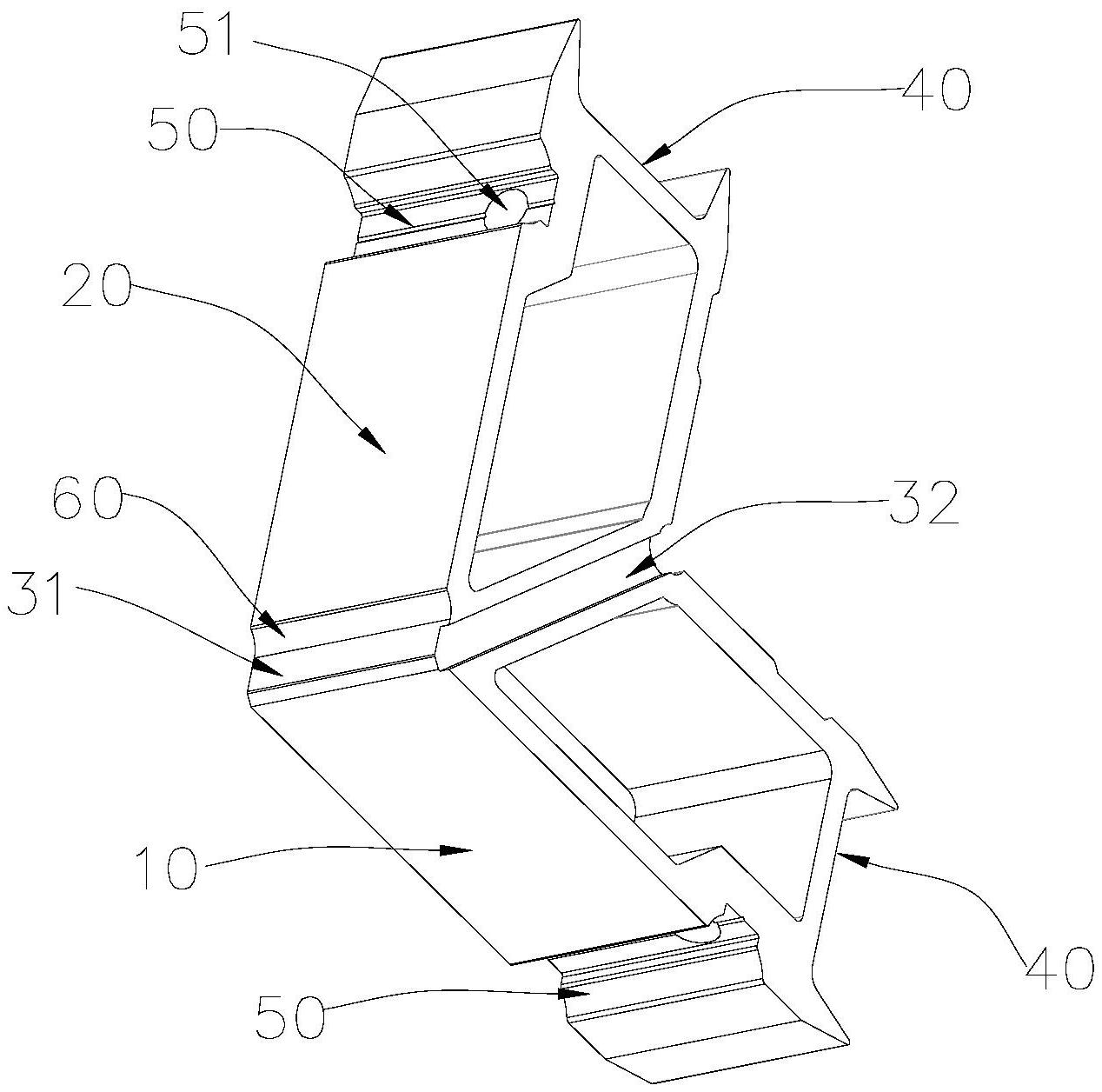本实用新型提供了一种角码技术领域的一种注胶角码及门窗结构,包括第一连接臂以及第二连接臂,第一连接臂和第二连接臂呈直角连接构成L型结构,第一连接臂与第二连接臂的连接的外顶角处开设有第一注胶槽,第一连接臂和第二连接臂的任一表面结合处的开设有第二注胶槽,第一连接臂与第二连接臂连接的内夹角处开设有第三注胶槽,第一注胶槽、第二注胶槽以及第三注胶槽之间相互连通,使用过程中,不仅比其他的角码节省昂贵的双组份胶,而且在门窗结构设计中,更加灵活,不需要整个腔体的闭环设计,节省门窗结构的成本。