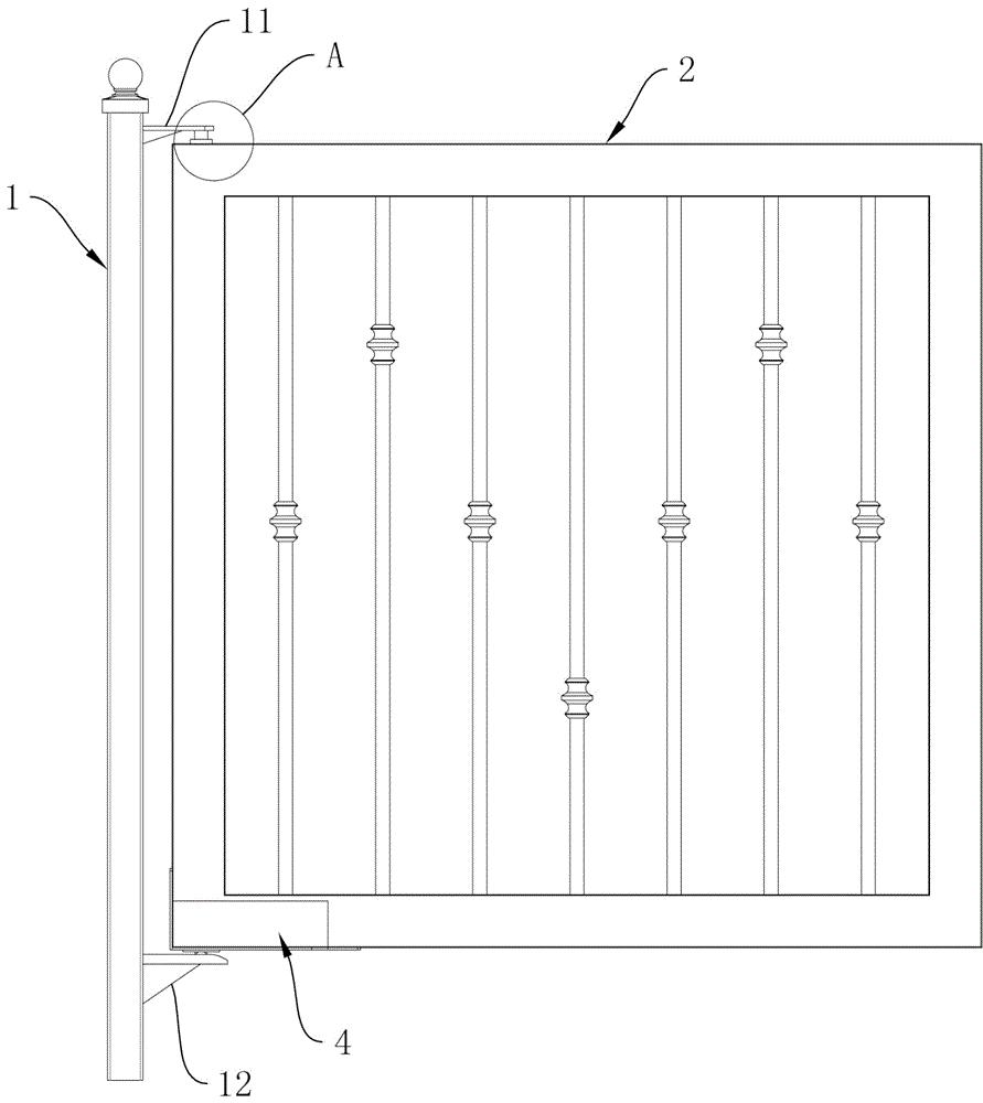 本实用新型涉及一种能自动关闭的金属门结构,其特点在于包括金属门柱、金属门扇、转轴、复位铰链、若干螺钉,其中金属门柱上端设有可拆装的第一安装座,金属门柱下端设有第二安装座,金属门扇顶部设有转轴套,金属门扇底部开设有嵌装槽,复位铰链嵌装在嵌装槽中,复位铰链通过螺钉固定在金属门扇上,转轴固定在第一安装座上,金属门扇布置在第一安装座与第二安装座之间,并使转轴套套设在转轴上,还使复位铰链铰接在第二安装座上。本实用新型在人们打开门之后,门会自动关上,具有使用方便、安装便利性高、结构可靠性高等优点。