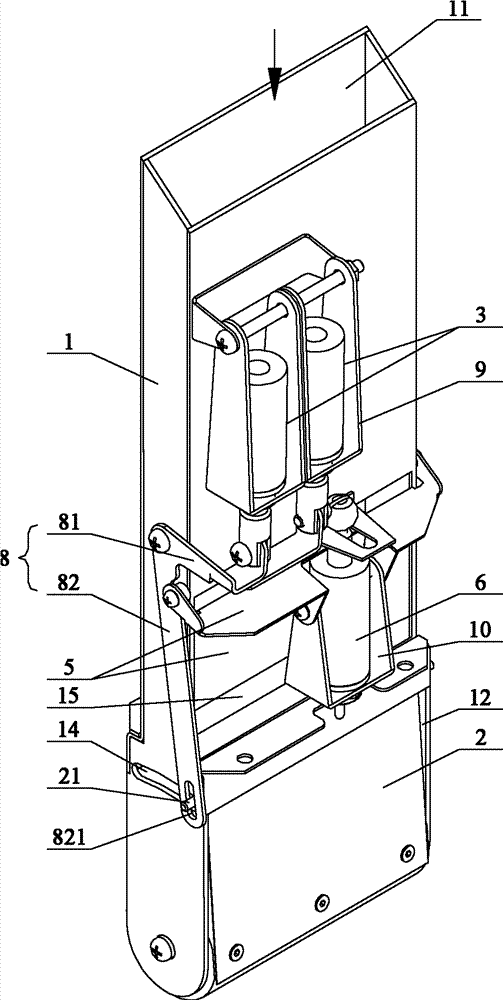 本实用新型公开了一种门禁卡回收装置及具有该回收装置的安防门系统,一种门禁卡回收装置,其筒体竖向设置,且上游端开有入卡口、下游端开有相对设置的无效卡出口和有效卡出口;分卡部件置于无效卡出口和有效卡出口之间,与筒体铰接的分卡部件可在无效卡工位和有效卡工位之间切换,以建立内部通道与无效卡出口或者有效卡出口之间的导通;第一驱动部件的动力输出端与分卡部件连接,驱动分卡部件在无效卡工位和有效卡工位之间切换;读卡器置于分卡部件的上游侧,读卡器用于识别卡有效信息并输出至控制器;控制器根据接收的卡有效信息,输出动作控制信号至第一驱动部件。该回收装置能够可靠进行“裸卡”及套装在卡套内的“访客卡”回收在此基础上,本实用新型还提供一种具有该回收装置的安防门系统。