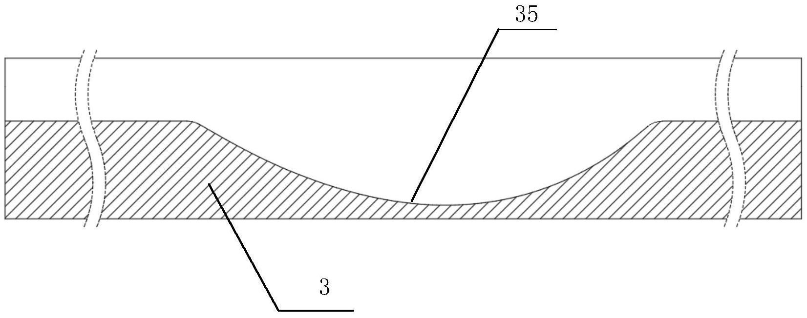 本实用新型提供一种下沉式气密滑动轮轨道,属于滑动门轨道制造领域;本实用新型包括:背梁、水平滑轨和静音胶条;所述水平滑轨垂直固定在所述背梁上,所述水平滑轨的上设置有滑槽,所述静音胶条安装于该滑槽内;所述静音胶条的顶部在长度方向上设置有圆弧凹槽,该圆弧凹槽的边缘与所述静音胶条之间具有圆弧形过渡。本实用新型在静音胶条上设置有圆弧凹槽,从而使滑动轮运行至此处时,能够轻微下沉,从而使滑动门整体下沉,不仅起到了限位作用,还能够有效的降低关门后滑动轮与水平轨道之间的间隙,增加了气密性。