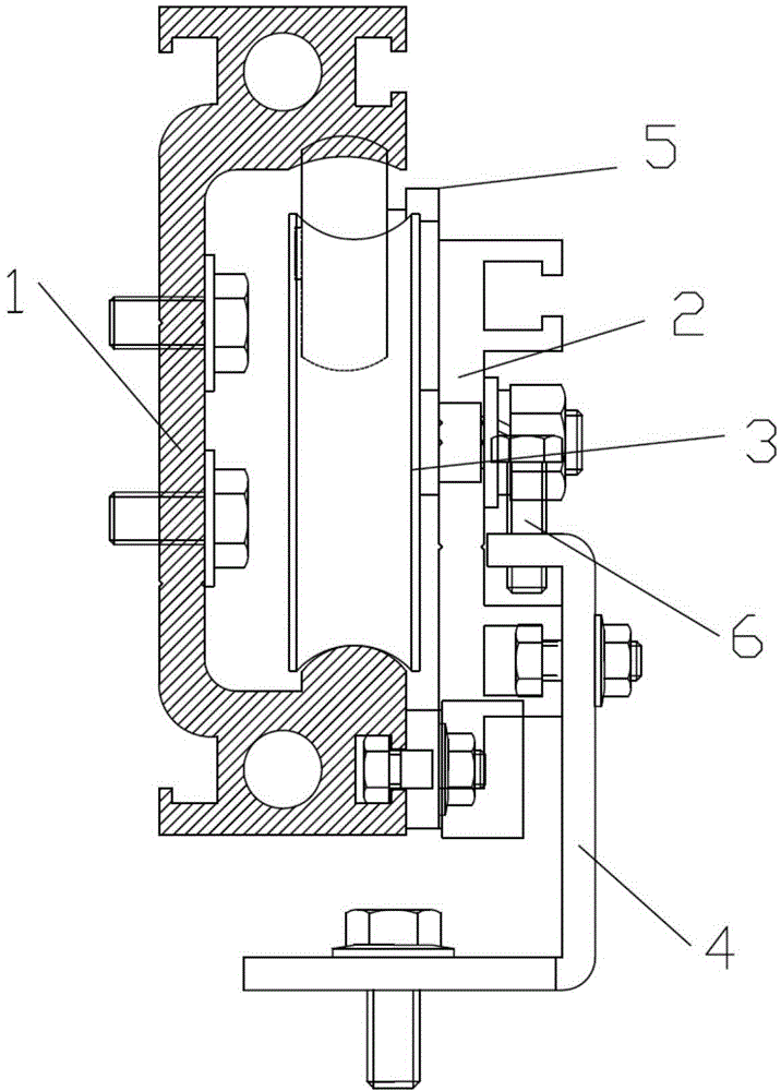 本实用新型涉及一种用于弧形平移门的防脱落门体吊挂装置,包括弧形轨道、弧形座板和滚动轮组件,弧形轨道与弧形座板的曲率相同,滚动轮组件沿着弧形轨道滑动,滚动轮组件与弧形座板连接,弧形座板与滚动轮组件同步移动,弧形座板与吊挂座固定连接,弧形门体固定连接于吊挂座。采用了该结构的用于弧形平移门的防脱落门体吊挂装置,结构简单,易于装配和加工,弧形导轨为一体式的型材,轨道厚实且不易变形;弧形座板与弧形导轨的弧度一致,使得弧形门体可以在弧形轨道上运行自如;该吊挂装置采用大滑轮滚动,使得噪音进一步减小;该吊挂装置还采用了上部的防脱装置,使得竖直放置的门体更加平稳、不易脱落。
