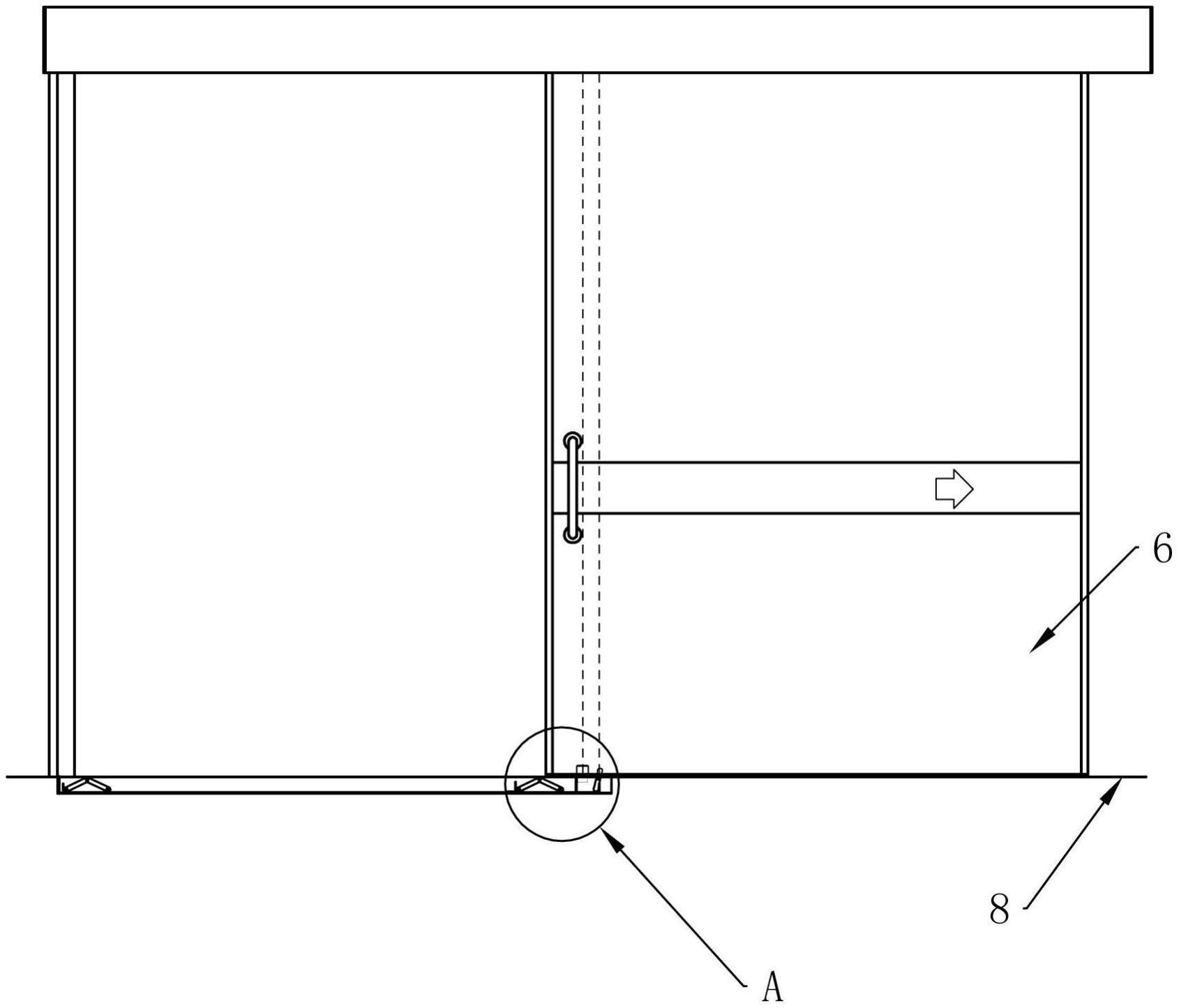 本实用新型公开一种气密平移门的地轨装置,包括:一地轨升降板,地轨升降板活动设于地面凹槽内;一推拉板,推拉板活动设于地面凹槽内,推拉板位于地轨升降板的下方,推拉板的上表面设有至少两限位板;至少两连杆组件,两连杆组件均活动设于地轨升降板与推拉板之间,两连杆组件分别位于地轨升降板的两端,每一连杆组件的一端固定于地面凹槽内,每一连杆组件分别与一限位板相正对,每一连杆组件的另一端与相对应的一限位板限位配合,每一连杆组件的中部均与地轨升降板的下表面相抵;一地轨铅板,地轨铅板安装于地轨升降板的下表面,地轨铅板位于两连杆组件的一侧。本实用新型便于安装、通行,能够防止鞋陷入。