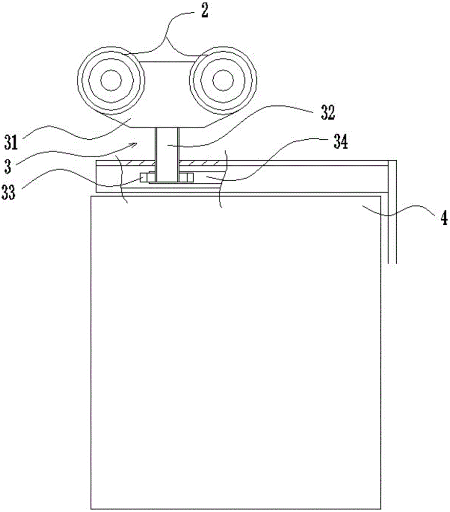 本实用新型提供了一种平移门吊轮及吊轮上下调整结构,属于自动门的技术领域。一种平移门吊轮及吊轮上下调整结构包括两端均带有倒斜角的圆柱体吊轮和与之配合的支撑面,且吊轮的底部和支撑面之间积尘槽,并且吊轮底部设置有上下调整结构;本实用新型将支撑面的每部分均呈“V”字形设置,保证了吊轮能竖直放置于滑轨内,有效避免产生斜向下的分力问题,延长使用寿命,降低成本,同时积尘槽还能将轨道和吊轮间的杂质收集,防止影响滑动,实现自清洁功能,并且丝杆、蜗轮以及蜗杆的上下调整结构实现了只需在门体的侧边处旋转蜗杆便能达到调节自动门离地高度的目的,无需拆除门体,调节更方便,便于安装以及后期的维护,有效提高了产品的市场竞争力。