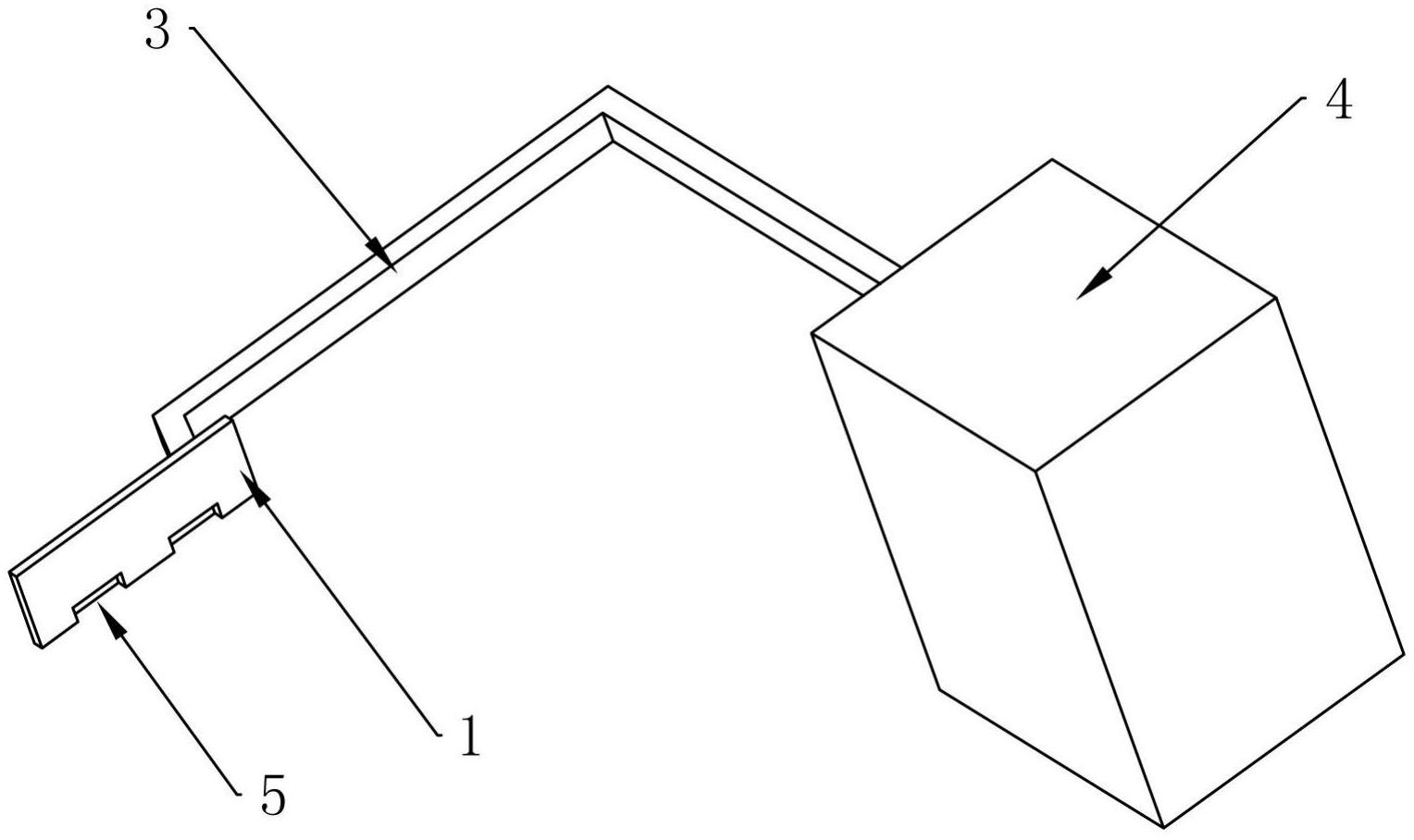 本实用新型公开一种铝切割机飞屑收集装置,包括:切割口基准靠山,切割口基准靠山的两端均设有通槽,切割口基准靠山的一侧用于与铝型材的一侧相抵,两通槽分别用于朝向铝型材的两端的切割处;密封装置,密封装置安装于切割口基准靠山的另一侧,密封装置内形成有空腔,空腔与两通槽相连通;吸风管,吸风管的一端与密封装置连接,吸风管的一端与空腔相连通;吸风设备,吸风设备与吸风管的另一端相连通。本实用新型可以将铝型材切割时产生的铝屑收集完全,这样避免了生产现场被铝屑污染,同时也避免了铝型材被铝屑刮伤的危险,降低了产品的不良率。