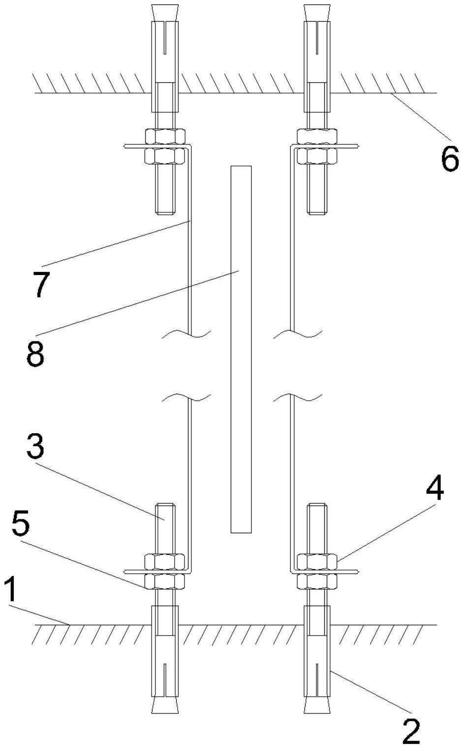 本实用新型公开一种限制随行电缆摆动距离的装置,包括底坑地面、顶层楼面、两根钢丝绳、随行电缆、控制柜和轿厢,所述随行电缆一端连接在控制柜,所述随行电缆的另一端连接在轿厢,两根所述钢丝绳相互平行设置,所述控制柜与轿厢相对设置在钢丝绳的两侧,所述控制柜与轿厢同两根钢丝绳呈十字分布,所述随行电缆穿过两根钢丝绳之间。只需将钢丝绳的两端分别固定安装在底坑地面和顶层楼面上,进而通过在随行电缆两侧设置的钢丝绳,有效限制了随行电缆左右摆动的距离,在有限的空间中保证随行电缆不会和井道内的其它部件发生干涉,安装快捷,简单可靠。