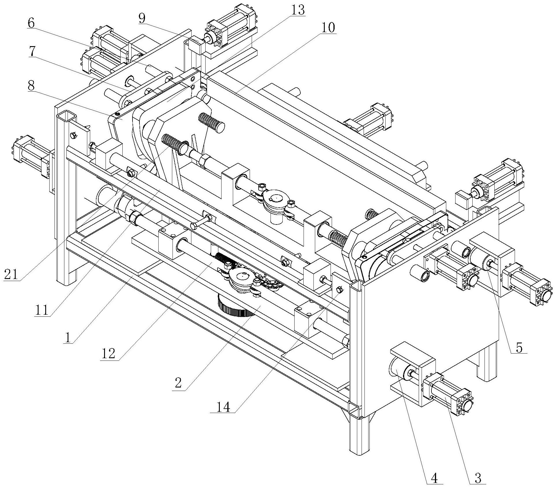 本发明公开了一种自动扶梯组装工装,包括梯级装配工装支架、分中定位件、三角架活动定位装置、踏板定位件、前梁定位装置、踢板分中定位装置以及伸缩滑轮机构,三角架活动定位装置的前端设有三角架,活动定位块的上端和下端均固定连接在伸缩滑轮机构上,与前梁定位装置相对的一面设有踢板分中定位装置,前梁定位装置包括前梁定位件、导向杆、固定座和定位气缸,踢板分中定位装置包括踢板定位杆、旋转杆、轴承座、踢板定位销和调节螺杆;伸缩滑轮机构包括伸缩气缸、链条、链轮、伸缩杆、第一伸缩滑轮、第二伸缩滑轮、拉簧、第一齿轮和第二齿轮,伸缩气缸的输出杆固定连接链条,本实用新自动完成扶梯组装,提高组装效率,而且组装简单方便。