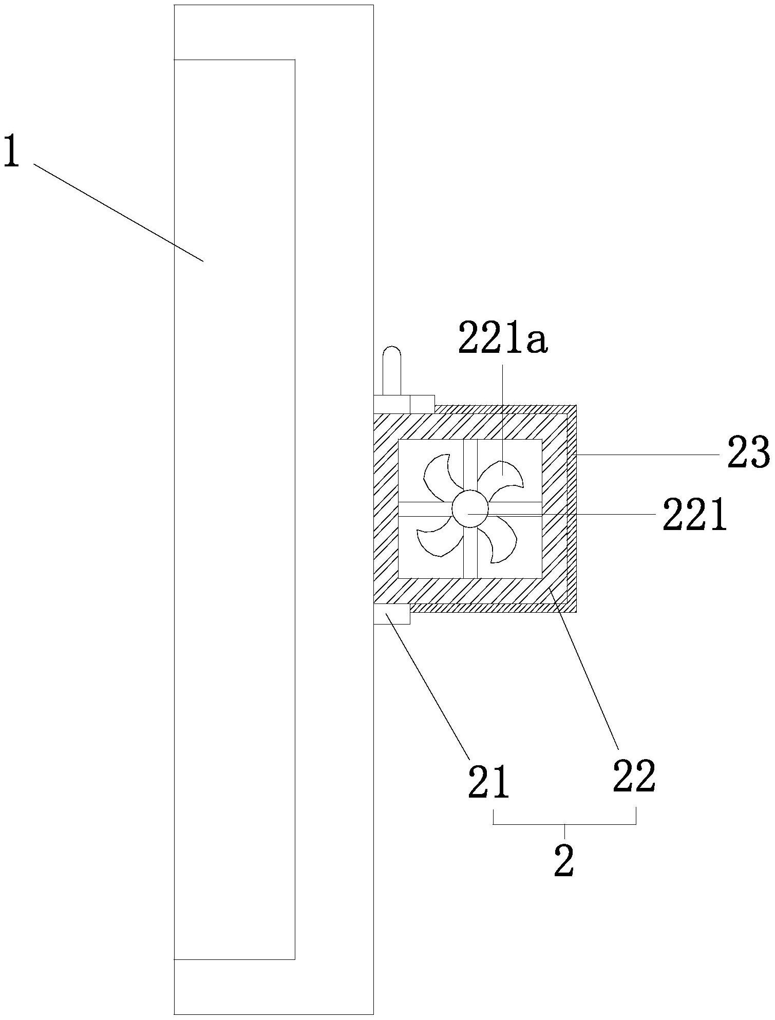 本实用新型提供了一种电视影片剪辑用显示器,包括显示器主体和散热组件和固定组件;所述散热组件包括散热板和风机,所述散热板固定安装在所述显示器主体背面,所述风机固定安装在所述显示器主体背面并位于散热板的一侧,所述风机内部固定有电机,所述电机输出轴固定有风扇,所述散热板背面可拆卸安装有多组散热片,多组所述散热片通过所述固定组件与所述散热板固定连接,所述散热板内部设有多组冷却槽,多组所述冷却槽内部均固接有冷却管,多个所述冷却管之间通过连接管相互连通,本实用新型通过设置散热片与冷却管和风机配合,扩大散热板的散热面积和散热效率,从而提升显示器整体的散热效果。