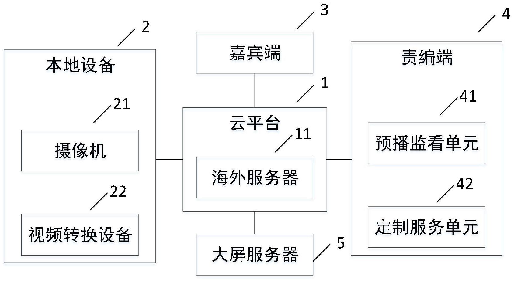 本发明提供一种基于云平台的广播电视互动节目制作方式,涉及广播电视制作技术领域,包括:云平台,云平台设有至少一虚拟房间;本地设备,用于将获取得到的演播室的本地视频流信号推送入虚拟房间进行保存;若干嘉宾端,用于将获取得到的嘉宾视频数据推送入虚拟房间进行保存;责编端,用于对与责编端位于同一虚拟房间内的各嘉宾端进行管理操作;大屏服务器,用于根据责编端发出的包含视频编号的责编指令拉取对应的嘉宾视频数据,并将嘉宾视频数据与本地视频流信号合屏输出。有益效果是适配专业制作流程;实现了责编端的监看和管理;保证了低延时音视频传输;可实现分屏展示、实时调度和切换缩放等功能;支持海外嘉宾接入;互动模式的定制化修改。