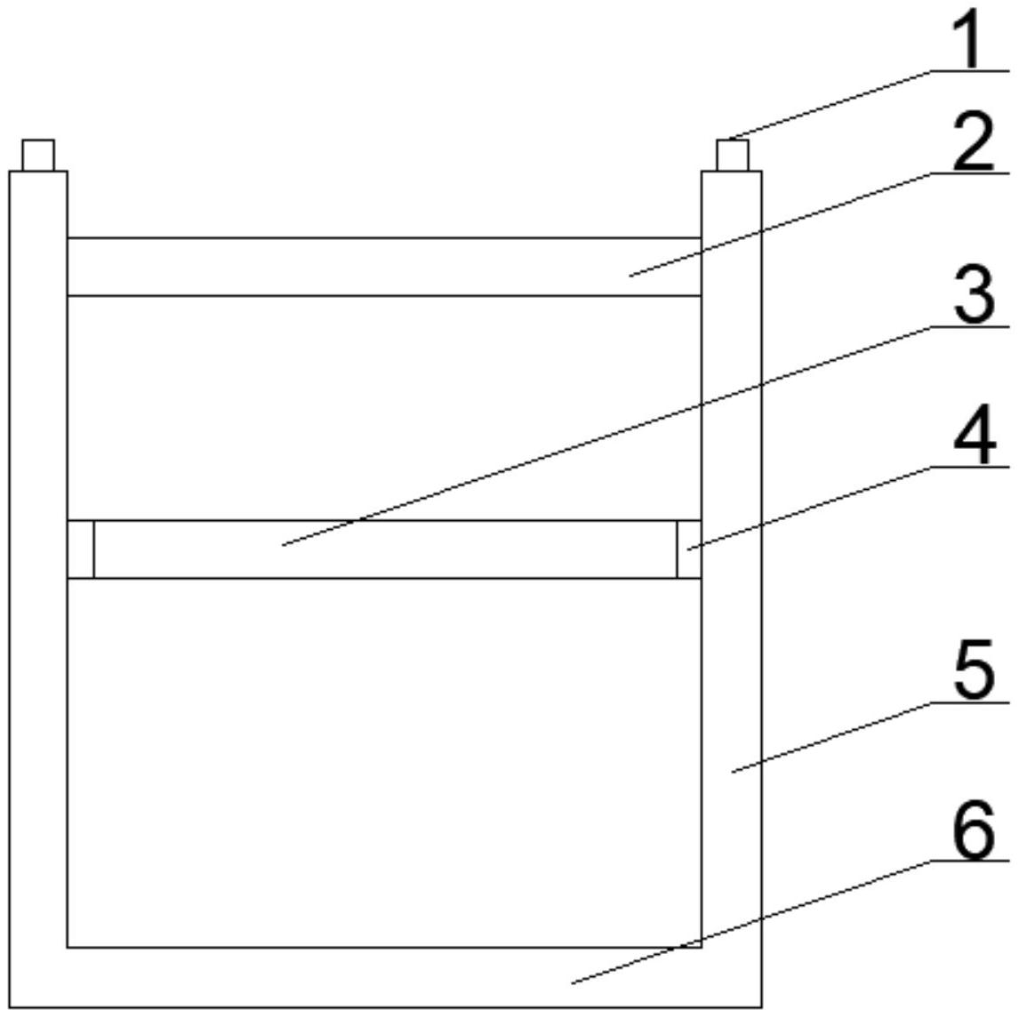 本实用新型公开一种乳胶漆安全运输用防护装置,包括支撑杆和底座,所述底座的上端四个拐角均设置有支撑杆,四个所述支撑杆之间均通过连接杆进行连接,四个所述支撑杆的顶端均设置有连接块,且四个支撑杆的底端均设置有凹槽,四个所述支撑杆的内侧均设置有连接件,四个所述连接件的中间部位设置有固定环,所述固定环的内侧设置有减震垫,通过将原有的乳胶漆安全运输用防护装置改为竖向放置乳胶漆桶,这样在放置乳胶漆桶的时候,桶盖上就不会粘有乳胶漆,又在防护装置内增加了固定环和减震垫,这样在运输乳胶漆桶的时候,桶就会被固定环固定,使乳胶漆桶不会与防护装置发生碰撞,固定环内的减震垫使在运输乳胶漆桶的时候,乳胶漆桶不会因为车辆的摇晃与防护装置磕碰。
