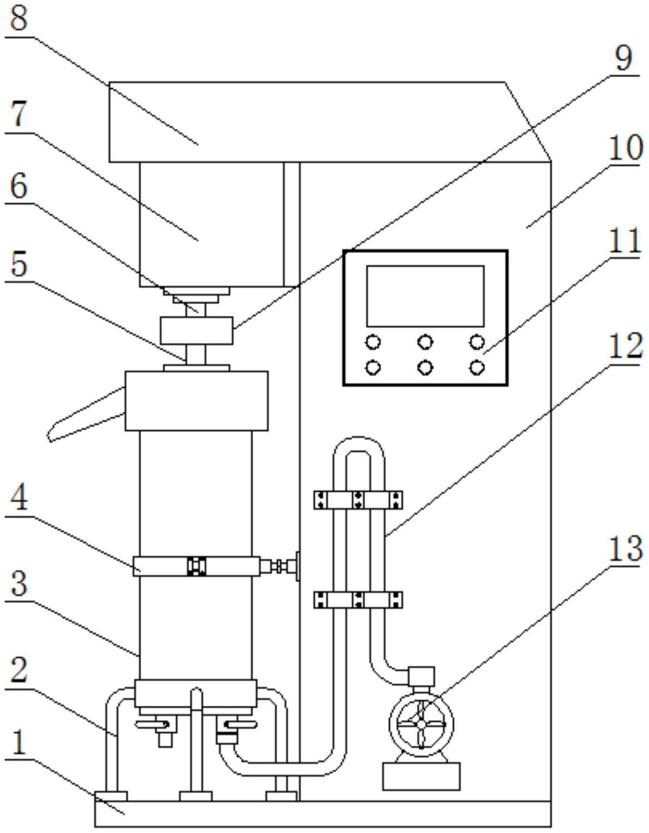 本实用新型公开一种可调节的乳胶漆生产用砂磨机,包括底座和砂磨主机,所述砂磨主机竖向安装在底座后半段上端外壁上,所述砂磨主机靠近上侧左端外壁内部内嵌有控制器,所述砂磨主机靠近下侧左端外壁上设置有进料泵,所述进料泵的出料口上连接有输送管,通过在该乳胶漆生产用砂磨机的砂磨主机前端外壁上增加有一个新型的的稳定安放装置,当砂磨缸安放到砂磨主机前侧并使用后,此时可通过把稳定安放装置套接到砂磨缸外部对安放的砂磨缸进行安放加固操作,从而能够使得砂磨缸在工作时不会受到分散轴带动砂磨盘转动时产生的离心力的影响,从而能够避免砂磨缸在工作时产生较大的晃动而影响到对乳胶球的生产效果。