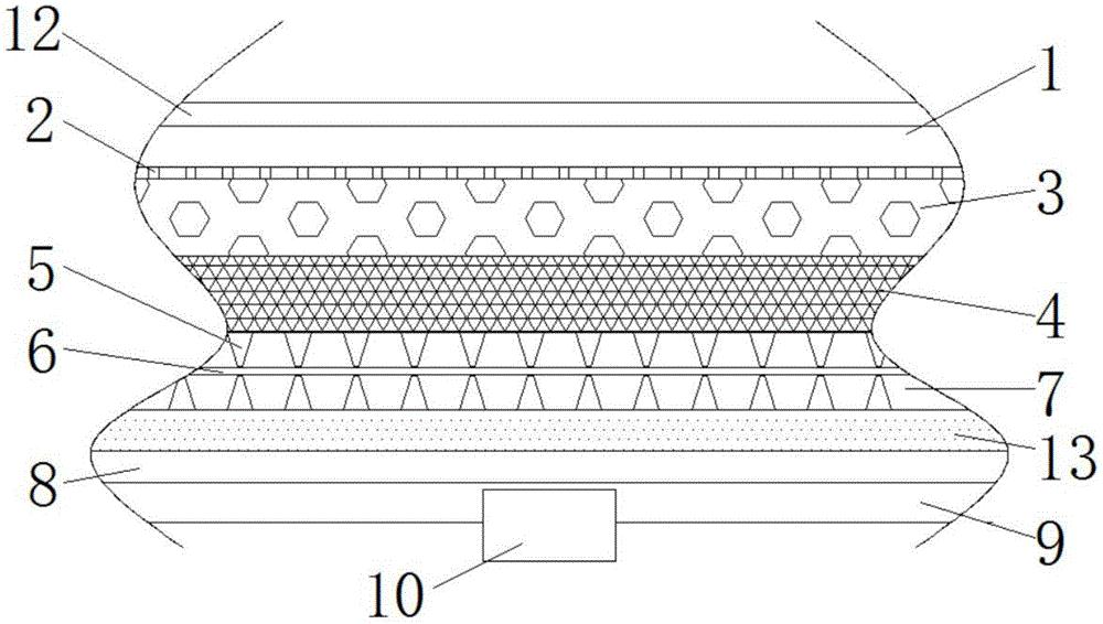 本实用新型涉及室内装修技术领域,且公开了一种可用于潮湿环境的防潮墙纸,包括装饰层,所述装饰层的外表面设有印花层,所述印花层的材料为无纺布,所述装饰层的下方设有透气孔层,所述透气孔层的下方设有吸音棉层,所述吸音棉层的下方设有防潮层,所述防潮层的内部含有干燥剂,防潮层的下方设有保温层,保温层通过橡胶树脂与纳米保温管组成。通过保温层良好的导热保温性能避免因冬季雨水的冰凉导致房间出现阴冷潮湿的现象,使居住者感到不适以及引发一些皮肤疾病的产生,配合良好性能的吸音棉层使得室外嘈杂的响声进行吸音,从而降低噪声的影响,又配合装饰层外表面的防潮层,使得擦拭墙纸时防止水将墙纸打湿出现墙纸发霉发潮的现象。