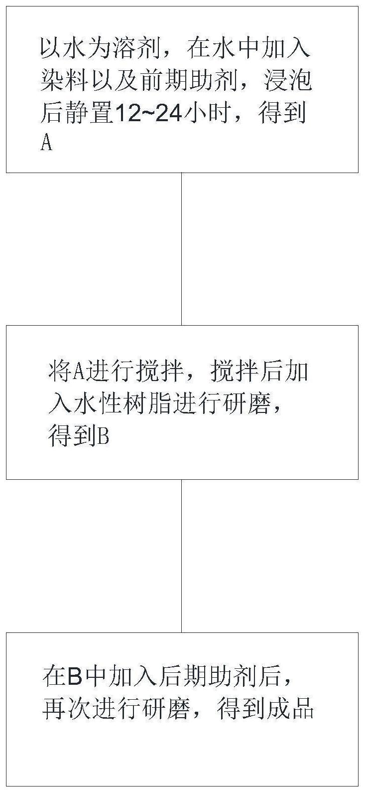 一种纺织热转印水性油墨,按重量份数计,原料如下:水52~74份,染料10~15份,前期助剂和后期助剂1~3份,树脂15~30份;一种纺织热转印水性油墨的制备方法,包括以下步骤:(1)以52~74份的水为溶剂,将10~15份的染料和0.7~2.1份的前期助剂浸泡在其中,静置12~24小时;(2)将静置后的液体进行搅拌,加入15~30份水性树脂对其进行研磨;(3)初步研磨后在其中加入0.3~0.9份的后期助剂再次进行研磨,即可得到成品;本发明所述的纺织热转印水性油墨及其制备方法,能够提升水性油墨的干燥速度,使得在印刷过程中能够均匀且流畅的进行印刷,并且附着力高,印刷热转印后的成品色牢度好,印刷出的图案清晰,采用水性油墨更加环保且对人体无害,VOC排放极低,减轻了环境污染。