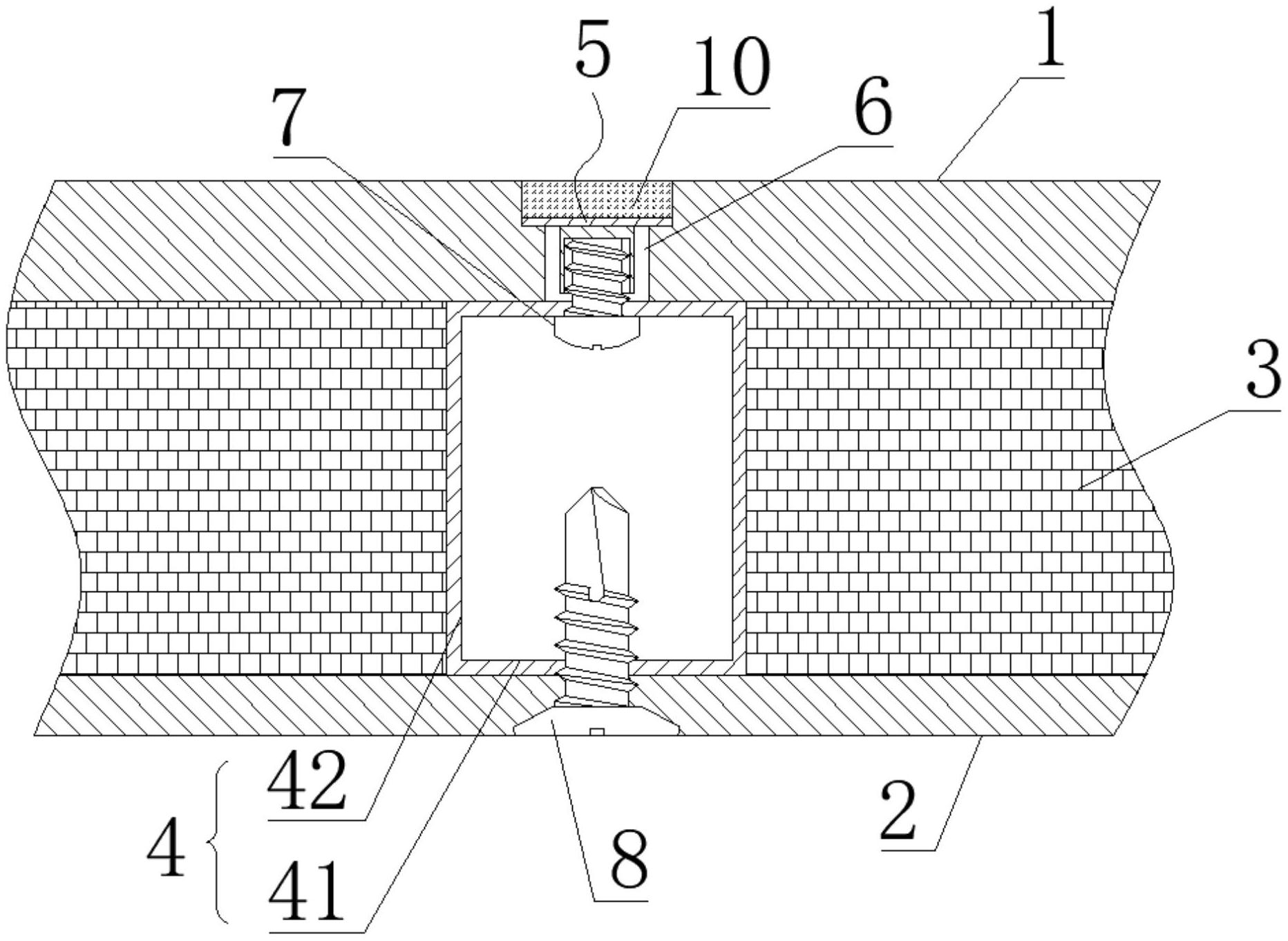 本实用新型公开了保温装饰一体板,属于保温装饰技术领域,保温装饰一体板,包括面板和背板,面板和背板之间具有保温层,还包括:加固件,加固件设置于面板和背板之间,加固件相对的两个侧壁均开设有第一孔位,螺母柱,面板上开设有T型穿孔,螺母柱预埋于T型穿孔内,背板上开设有第二孔位,第二孔位与第一孔位相对设置,螺纹紧固件,螺纹紧固件用于将面板、背板、以及加固件固定连接为一体。本实用新型的保温装饰一体板,通过加固件的设置加固面板和背板之间的连接,具有良好的可靠性和安全性,并且采用在面板开设有T型穿孔,并预埋螺母柱的设置,不仅具有良好的连接稳定性,而且有利于生产加工。