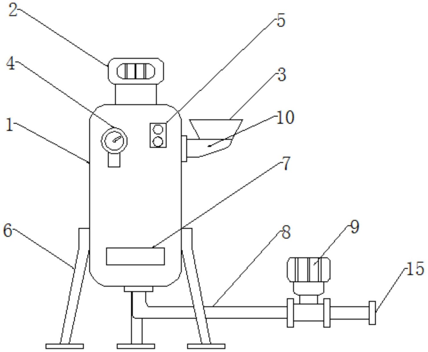 本实用新型公开了一种用于涂料生产的过滤装置,涉及涂料过滤装置技术领域,一种用于涂料生产的过滤装置,包括外壳、电机和进料口,所述外壳上端通过螺栓固定安装有电机,所述外壳右侧设有进料口,所述进料口下端连通连接有进料管,所述外壳前段外侧固定安装有计时表,所述计时表右侧设有开关,所述外壳下端外侧固定设有加热器,所述外壳下端两侧焊接有支脚架,所述外壳内部设有搅拌机构,所述搅拌机构上端设有活动转轴,所述活动转轴下端连接固定有活动杆,本实用新型通过加热器对加热板进行加温加热,使加热板对过滤好的涂料进行加热,且控温灵敏和干燥效果快速,从而实现了减少了生产时间并且质量受到保证。