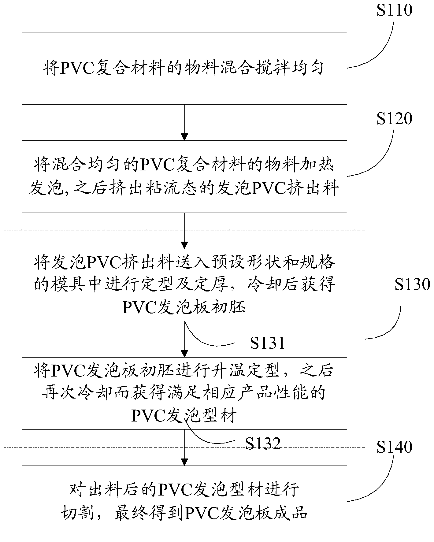 本发明公开一种地板制造方法,通过在PVC发泡层表面上添加包括PVC耐磨层和PVC彩膜层的PVC层而得到,其中PVC发泡层采用以下步骤制取的PVC发泡板:将PVC复合材料的物料混合搅拌均匀,该PVC复合材料以重量份计,包括PVC40~60份、轻质碳酸钙40~60份、无机/有机复合发泡剂0.8~1.2份、发泡调节剂3~5份、增韧剂2~4份、润滑剂0.8~1.2份以及稳定剂1.5~2.5份;将混合均匀的PVC复合材料的物料加热发泡,之后挤出粘流态的发泡PVC挤出料;将发泡PVC挤出料入模定型并冷却,以得到PVC发泡型材;对出料后的PVC发泡型材进行切割,最终得到PVC发泡板成品。由此制得的PVC地板结构强度高,发泡性能好,具有较为满意的静音效果。