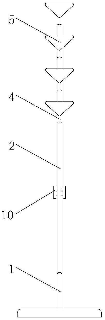 本实用新型公开了一种地板展架,包括立柱(1),立柱(1)上转动连接有展示架,展示架包括多个相互连接的第一支架(2),相邻第一支架(2)之间形成放置槽(3),任意一个或多个第一支架(2)的顶部可拆卸连接有第二支架(4),第二支架(4)上设有安装部(5)。本实用新型能够分别实现对方形地板和长条形地板的展示,并能够根据需要自由调节地板的高度和放置角度,具有功能多样,适用性好的特点。