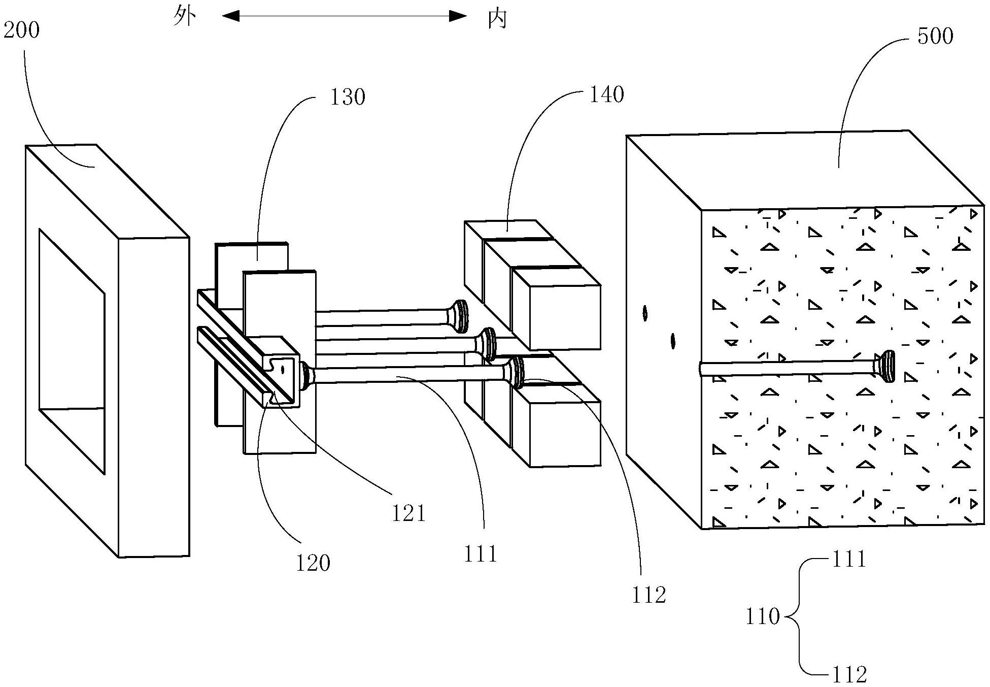 本实用新型涉及一种固定系统,用于连接幕墙和混凝土结构,固定系统包括:连接组件和保温件,连接组件包括彼此连接的悬挂部与连接部,悬挂部位于连接组件中沿第一方向的一端,连接部位于连接组件中沿第一方向的另一端,连接部用于与混凝土结构固定连接,悬挂部用于与幕墙固定连接;保温件设有沿第一方向贯通的通道,连接组件伸入通道中且封堵通道,悬挂部经通道外露,保温件用于抑制混凝土结构在成型过程中混凝土在第一方向上的流动范围。固定系统可以将保温件作为模板安装在连接组件上,这样连接组件不仅可以悬挂幕墙,也可以搭载保温件,从而节约了能源,保温件当作模板,所以在混凝土成型后无需拆除,避免花费大量时间和物料,降低了经济成本。