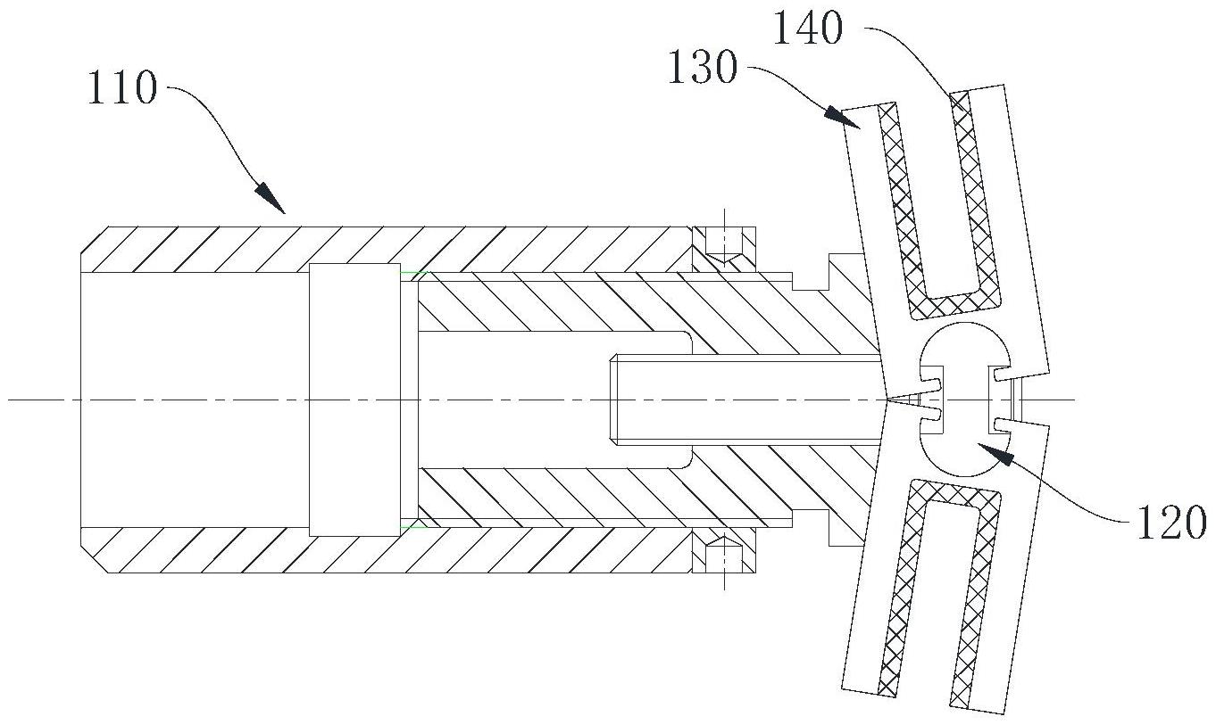 本实用新型涉及一种装饰板的驳接组件、装饰性幕墙,包括:底座、连接杆、多个夹持头、装饰板以及支承结构。上述的装饰板的驳接组件、装饰性幕墙在实际安装时,由于连接槽沿第一方向的宽度小于配合面沿第一方向的最大宽度,因此,配合面与弧形凹槽的槽壁适配的同时,第一凹槽的底壁可以在连接槽的沿第一方向的侧壁之间随配合面转动,从而实现沿第二方向排布的两夹持头之间产生一定角度的偏转,使得该两夹持头夹持的两块装饰板之间产生一定角度的偏转,进而实现了曲面装饰性幕墙的设计方案,减少了装饰板的驳接组件大量开模导致的制造成本提高。