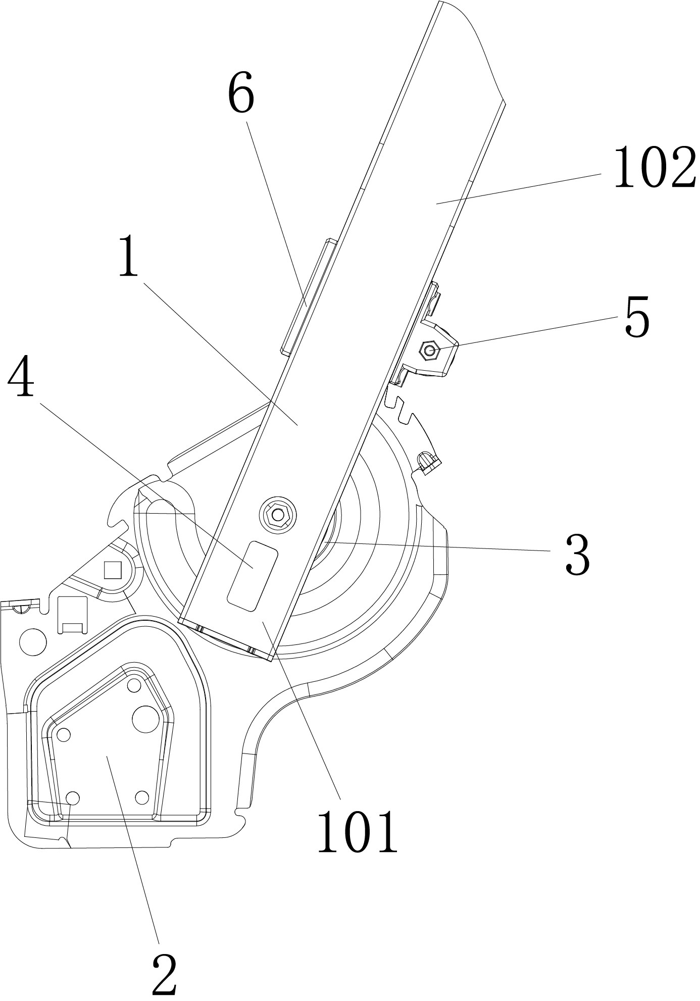 本实用新型公开了一种手推割草机折叠保护机构,包括支架,还包括,调节件,活动设置在所述支架上,所述调节件上设置有开关;锁定件,包括设置在所述调节件上的第一锁定件和设置在所述支架上的第二锁定件;接触部,固定在所述支架上,与所述开关配合,控制所述开关的启闭。通过简单操作,转动调节件来控制接触部与滑块的配合状态,从而通过开关的启闭来控制割草机的工作状态,通过棘爪和棘槽的配合,对调节件的状态进行锁定或解锁,有效避免因误操作或误触碰导致机器的启动,避免对运输人员造成伤害。
