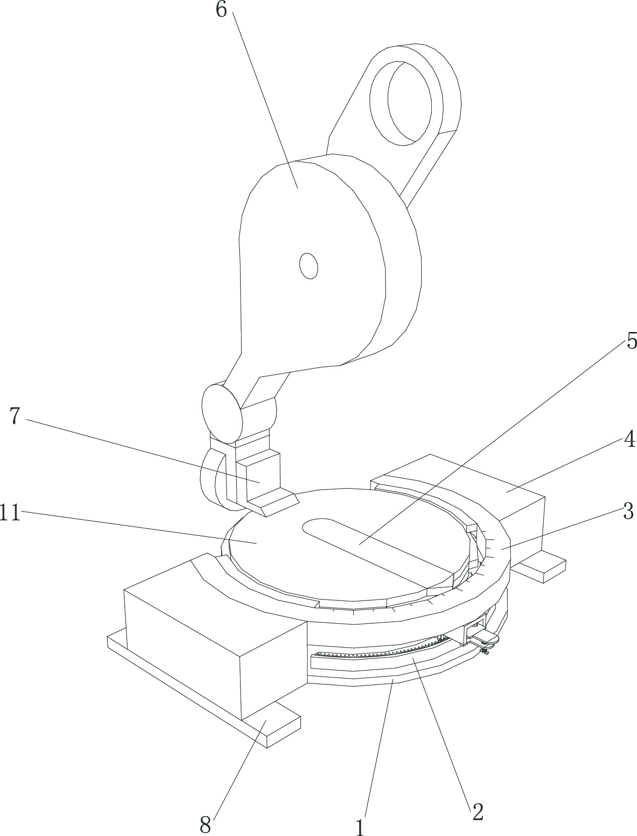本实用新型公开了一种高精度皮带式斜断锯,包括底盘,所述底盘顶部外壁转动连接有连接柱,连接柱顶部外壁固定有工作台,连接柱外壁固定有套筒,套筒一侧外壁焊接有调节框,调节框顶部外壁固定于工作台的底部外壁上,底盘顶部外壁固定有内齿条,调节框顶部内壁转动连接有转轴,转轴外壁分别固定有刹车盘和齿轮,齿轮与内齿条啮合连接,调节框一侧内壁分别固定有第一刹车片和固定块,第一刹车片底部外壁设置于刹车盘的顶部外壁上,固定块一侧外壁通过合页连接有第二刹车片。本实用新型通过设置刹车盘和齿轮,让工作人员需要施加一定的力才可推动调节框带动工作台进行转动,从而能够更加精确的对工作台进行水平角度调整。