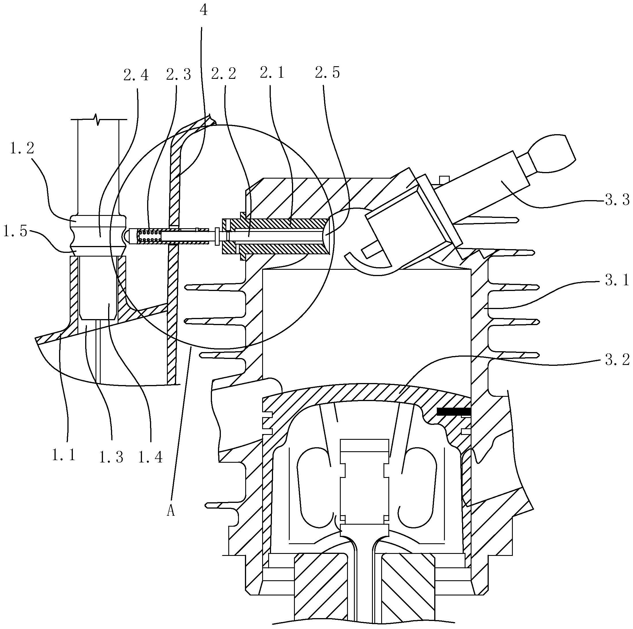 本发明公开了一种汽油链锯的释压启动装置,旨在提供一种不仅能够减轻操作工人通过手拉起动器启动油锯的发动机时提供的拉力,降低启动油锯的工作强度;而且可以有效避免在发动机不工作后,因定密封球面与动密封球面处于分离状态,导致在外界粉尘进入,而影响发动机的使用寿命的问题的汽油链锯的释压启动装置。它包括手拉起动器、释压缸体、滑动套筒、位于滑动套筒内的预紧压缩弹簧及设置在起动手柄的外侧面上的环形凹槽。滑动套筒能够沿滑动导杆滑动,预紧压缩弹簧位于滑动套筒的第二端与滑动导杆的第二端之间;当动密封球面与定密封球面密封接触后,滑动套筒的第二端伸入所述到环形凹槽内。