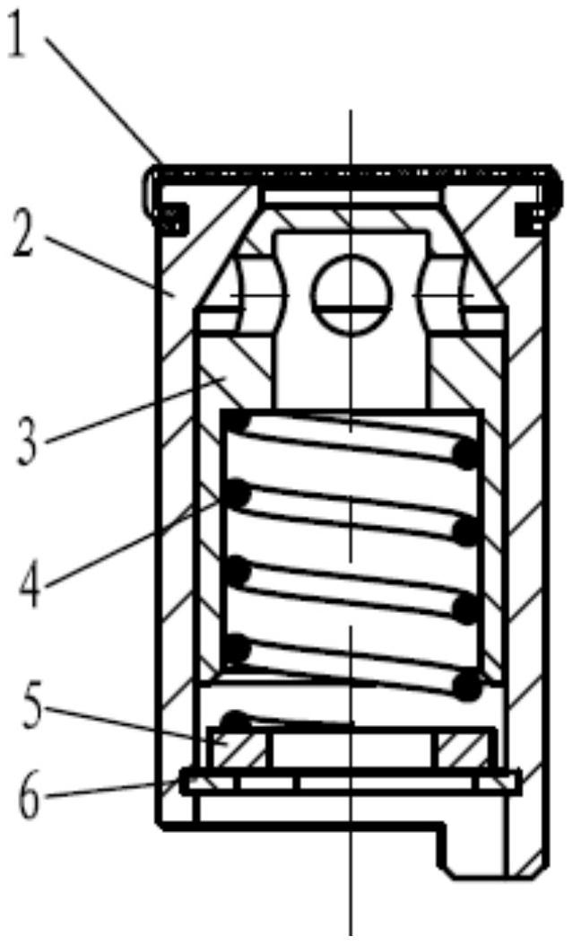本实用新型公开了一种可调节压力的机油安全限压阀,包括滤网、阀体、阀芯、压缩弹簧、弹性挡圈,所述滤网旋铆固定在阀体顶端,所述阀芯内置在阀体内,所述阀体的底端卡扣连接有弹性挡圈,所述阀体内、且位于弹性挡圈与阀芯之间还放置有调整垫圈,所述压缩弹簧放置于阀体内,所述压缩弹簧一端抵触在阀芯上、另一端则抵触在调整垫圈上,所述阀体内侧顶端还设有密封锥面,所述阀芯顶端为球面;本实用新型具有可调节压力、球面线密封、带过滤、匹配性好、结构简单的特点。