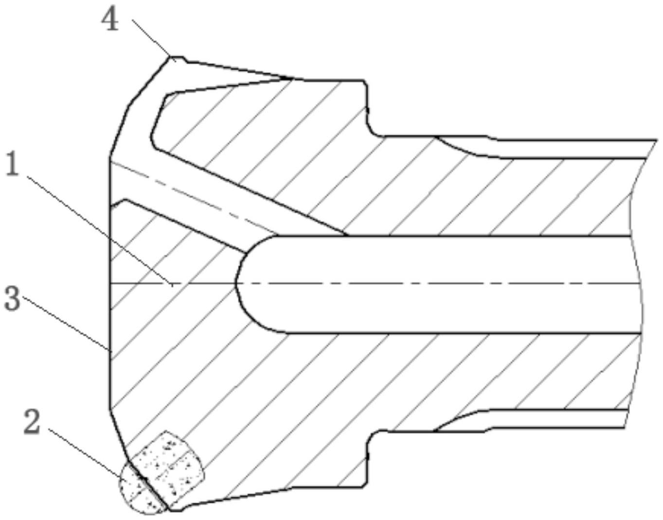 一种适用于硬岩的钻头,包括钻头裤体和安装在钻头裤体齿面端的合金齿,所述钻头裤体的外侧、在靠近齿面端的位置设置有用于固定合金齿的凸台,所述凸台为钻头裤体的最大外径尺寸,所述凸台的硬度小于所述钻头裤体的硬度,本装置凸台在轴向和径向设有一定的厚度,使得凸台一方面对合金齿起到固定支撑的作用,防止合金齿掉落及裤体开裂,另一方面由于凸台相比裤体硬度低、磨损面积占比小,钻头钻进过程中岩渣会将凸台缓慢磨损,形成凸台与合金齿同步磨损的情形,当合金齿磨损到原钻头裤体的位置时,凸台也磨损殆尽,从而使得合金齿底部凸出钻头裤体,这样钻头仍然可以继续使用,从而提高了整个钻头的使用寿命。