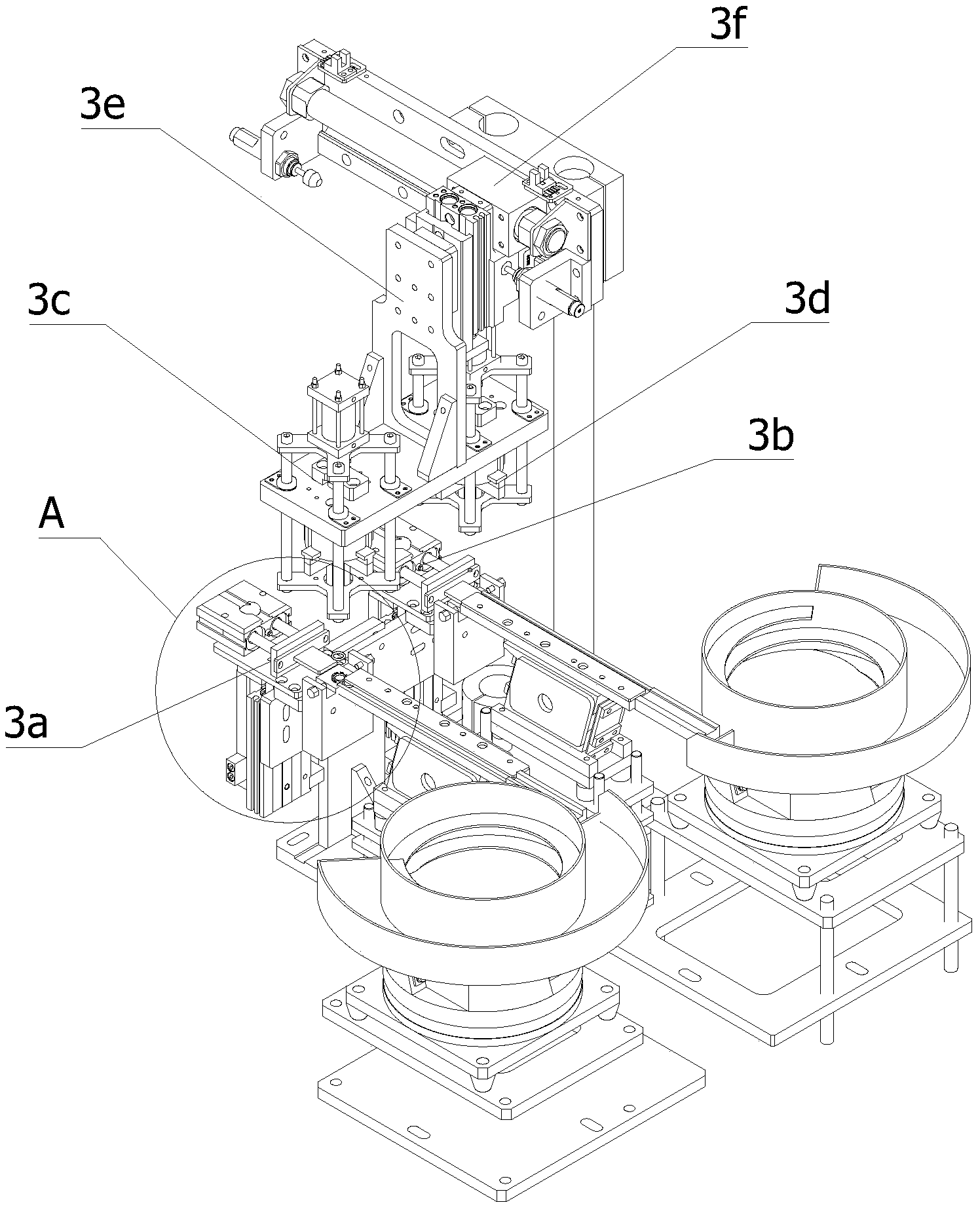 本实用新型涉及节流阀自动装配设备技术领域,具体地,涉及一种节流阀装配生产线的阀体密封圈自动安装装置,包括有第一密封圈上料台、第二密封圈上料台、第一密封圈安装机械手、第二密封圈安装机械手和机械手固定支架,第一密封圈安装机械手和第二密封圈安装机械手并排安装在机械手固定支架上,机械手固定支架固定安装在支架移动机构的工作端,第一密封圈上料台和第二密封圈上料台结构相同,第一密封圈安装机械手和第二密封圈安装机械手结构相同,第二密封圈安装机械手的工作端水平高度高于第一密封圈安装机械手的工作端,该装置能够一次同时完成安装阀体顶端和中端的两个密封圈的工序。