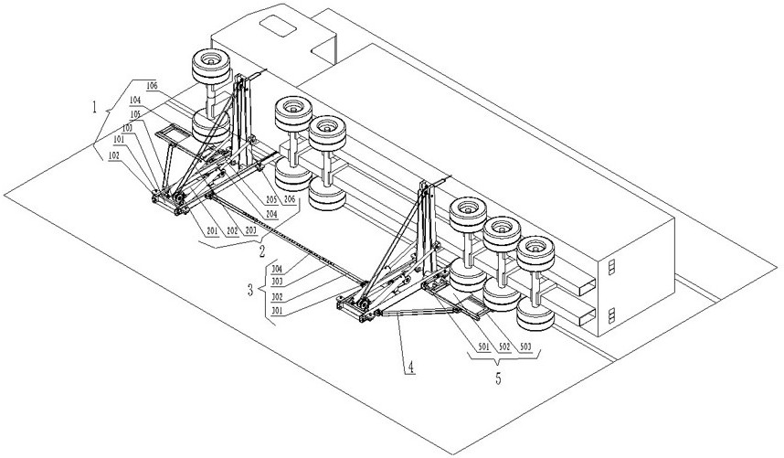 本实用新型涉及一种车辆反向扶正系统。本实用新型包括设置翻转驱动组件移动小车,移动小车包括小车车架、轴承座、伸缩支撑叉驱动缸,小车车架设置有伸缩长梁,伸缩长梁设置轴承座,翻转驱动组件包括翻转动臂驱动缸、翻转动臂,翻转动臂下端为回转连接点,回传连接点与轴承座孔轴配合连接,靠近翻转动臂臂体中部设置连接轴,翻转动臂驱动缸的活塞杆端耳环连接翻转动臂的连接轴,翻转动臂驱动缸尾部连接小车车架,翻转动臂上端设置牵引侧翻车辆的连接点,伸缩长梁能够延伸至侧翻车辆底部超过车辆重心位置,翻转动臂驱动缸驱动翻转动臂绕回传连接点翻转,移动小车和翻转驱动组件集成连接构成翻转移动小车,实现侧翻车辆快速、安全、稳定地扶正。