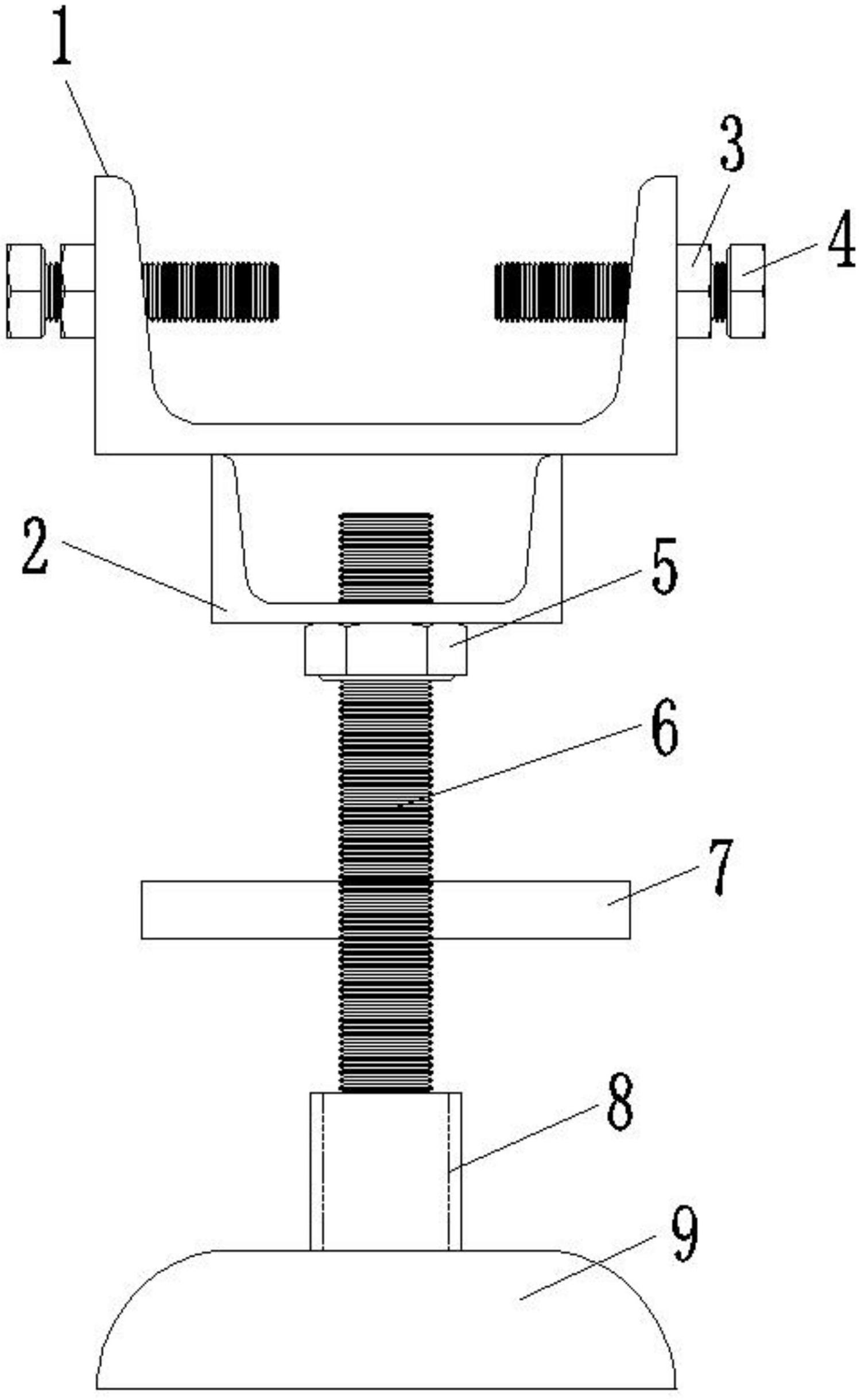 本实用新型公开了一种简易可调节的支撑装置,包括第一槽钢和第二槽钢,所述第一槽钢的下表面焊接有第二槽钢,所述第一槽钢的两侧侧壁和第一螺母的内部均贯穿有螺栓,所述第二槽钢的下方中心安置有第二螺母,所述螺柱的内部安装有手柄,所述套筒的底端焊接有底座。本实用新型解决了不同管径的管道焊接过程中的弯曲变形且表面易磨损的问题,同时该简易可调节的支撑装置取材方便,价格低廉,操作简单,通过转动手柄带动螺柱旋转,螺柱与第二螺母相对运动,可以微调底面到管道垂直方向的距离,待管道高度调节好后,顶部第一槽钢两侧的螺栓可调节管道水平方向的距离,在支撑管道的同时可以随时微调管道竖直水平的距离。