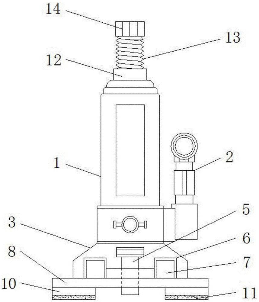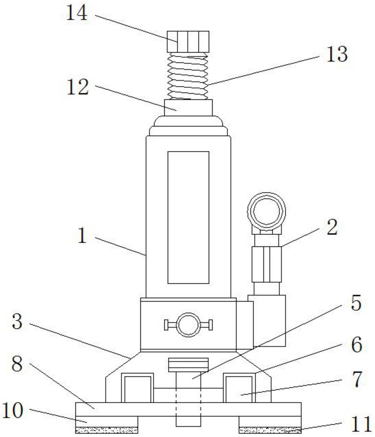 本实用新型公开了具有锚孔调节机构的模块化移位千斤顶,包括主体、限位孔和柱塞,所述主体的外部一侧安置有操作杆连接块,且主体的下端连接有连接底座,所述限位孔开设于连接底座两侧内部,且限位孔的内侧设置有限位插柱。该具有锚孔调节机构的模块化移位千斤顶设置有防滑层,防滑层外侧贴合于支撑块内侧,对称分布的支撑块可以均匀承受来自放置底座上端的压力,配合设置有的防滑层保证该模块化移位千斤顶在实际使用过程中的稳定性,垂直状分布的柱塞与螺纹柱,可以保证旋转支撑块的稳定性,不会出现倾斜影响使用效果的情况,同时通过旋转支撑块旋转螺纹柱,可以对螺纹柱与柱塞之间的长度进行调节,有效提升该模块化移位千斤顶的实际使用范围。
