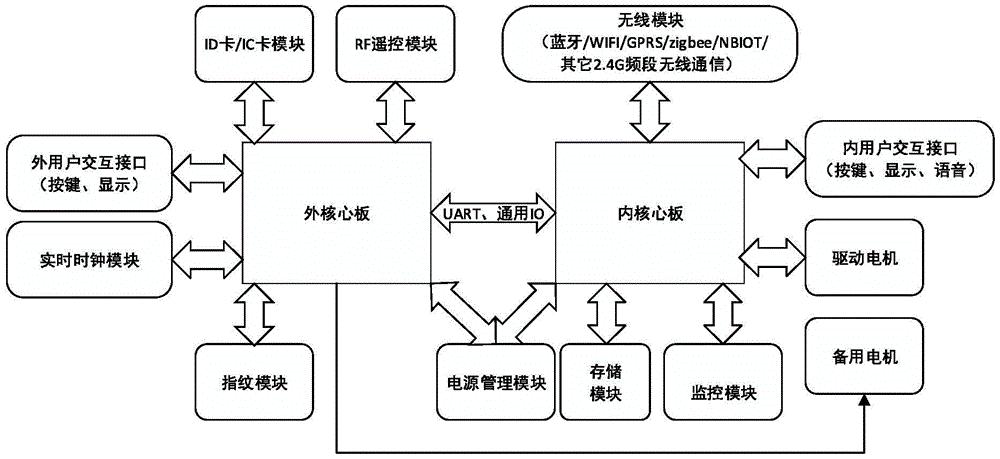 本实用新型公开了一种适合租赁的智能锁具,属于智能锁具技术领域。现有的智能锁使得消费者缺乏安全感,无法让消费者放心使用。本实用新型内置实时时钟模块,实时时钟模块不仅对用户租赁时间进行计时,由于时间的唯一性,还为服务器与设备端通信加密过程提供可变参数依据。通过实时时钟模块保持锁具时间与服务器相同步,便于服务器对锁具进行管理,同时实时时钟模块能够对锁具使用时长进行统计计时,进而服务器能够根据租赁时间控制锁具功能,确保服务器能够对租赁的智能锁具进行有效控制,使得智能锁具的租赁方案能够实现。
