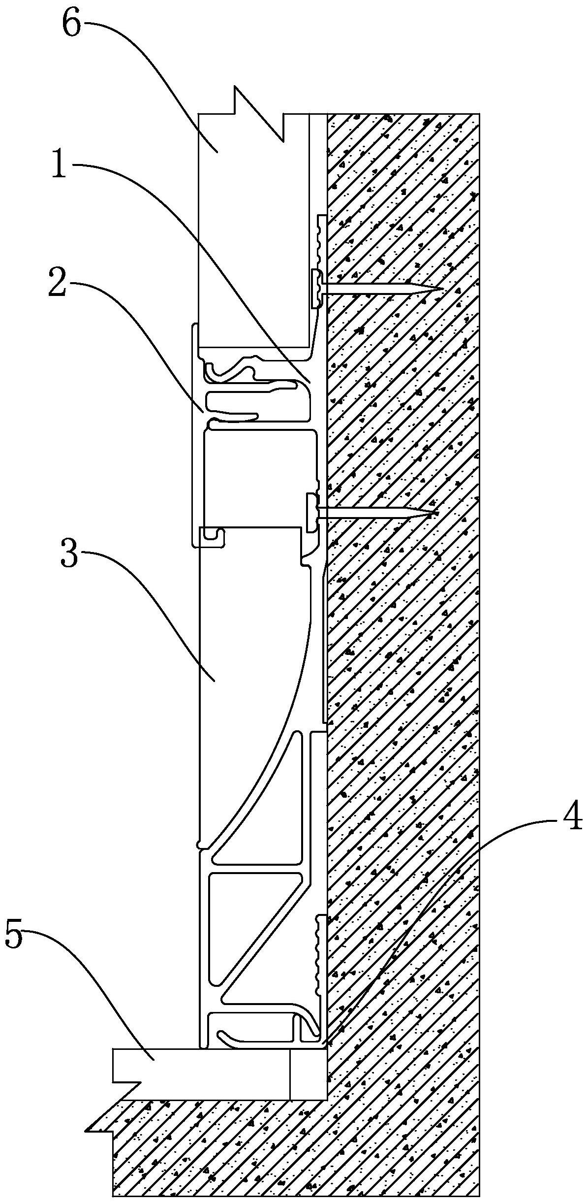 一种铝合金安装于地面与墙面之间的踢脚组件