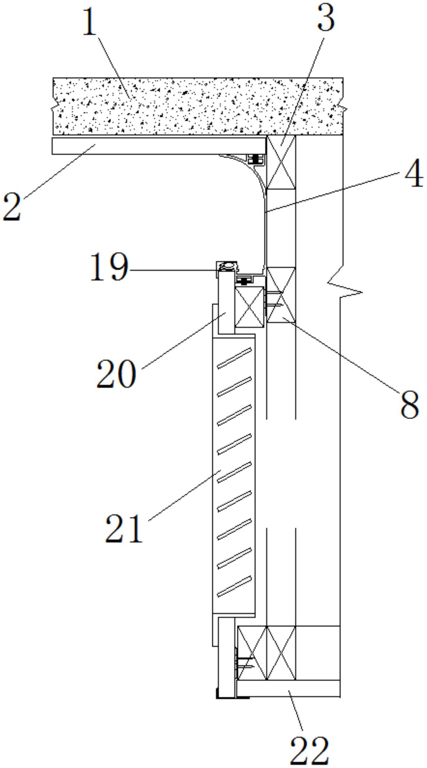 本实用新型公开了一种内角灯槽线,包括顶部墙壁、下角码位和卡舌断口,所述顶部墙壁的下部分布有上墙板,且上墙板的右端分布有第一定位块,所述上墙板的右端下部分布有支撑中板,且支撑中板的顶部固定有压边板,所述卡舌断口的外部设置有卡口外壁,且卡口外壁的内部左端分布有卡口底角,所述卡口底角的下端分布有压板口,且压板口的右端连接有卡口内壁,所述卡口内壁的下端连接有中墙板,所述中墙板的下部分布有支撑板块,且支撑板块的下端右侧设置有底墙板。该内角灯槽线以铝合金为材质,专门配合于竹木集成墙板的内角灯槽线,它使用占用空间很少的LED作为光源,卡扣式收口,固定方式只需在一处打钉即可,给工作人员的安装固定带来方便。