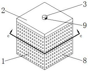 本实用新型公开了一种镍氢电池外壳保护套,包括保护套本体、盖板、把手、缓冲槽、滑动板、缓冲弹簧和缓冲凸块,所述盖板卡接于保护套本体的顶部,所述把手固定连接于盖板的顶部,所述缓冲槽开设于保护套本体的内壁,所述滑动板滑动连接于缓冲槽的内腔,所述缓冲弹簧的两端均与滑动板固定连接,所述缓冲凸块固定连接于保护套本体的表面,所述缓冲槽的数量为四个,且四个缓冲槽均匀分布在保护套本体的内壁。本实用新型设置保护套本体、盖板、把手、缓冲槽、滑动板、缓冲弹簧和缓冲凸块的配合使用,解决了现有的保护套抗冲击性差,在保护套摔落时不能缓解冲击力,其内部的镍氢电池以及电池外壳会出现破裂损坏的问题。