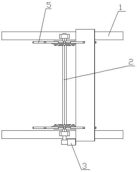 一种木地板翻板装置,它包括机架(1)、主轴(2)、主轴驱动电机(3)和一对翻板组件,主轴(2)的两端分别通过轴承和轴承座安装在机架(1)上,主轴驱动电机(3)安装在机架(1)上,主轴驱动电机(3)的动力输出轴通过减速机与主轴(2)的一端传动相连,翻板组件包括固定盘(4)、一组翻板杆(5)、支撑盘(6)和压紧盘(7);优点是:翻板速度快,减轻了工人的劳动强度。