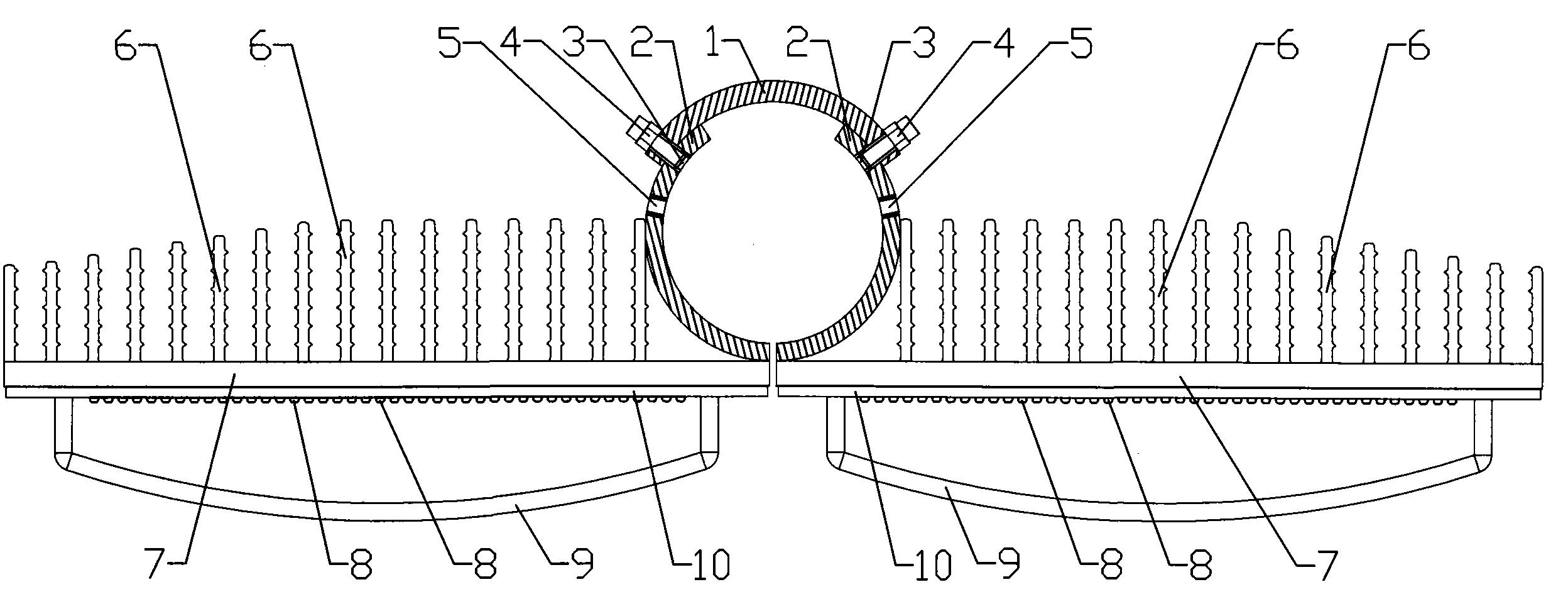 本发明涉及一种LED路灯,包括两组LED组件,LED组件包括光源组件和散热体,两组LED组件之间设置有用来调节光源组件照射角度的调节装置;在安装过程中,可以根据需要将第一连接板上的连接孔与第二连接板上沿第二连接板的滑动方向上设置的不同的连接孔通过连接螺栓连接,既可使散热体转过不同的角度,从而使LED光源转过不同的角度,满足不同照射角度和照射范围的需要,以达到最佳照明效果,LED光源照射角度的调节简便、快捷,并且调节装置结构简单,易于制造,生产成本低。