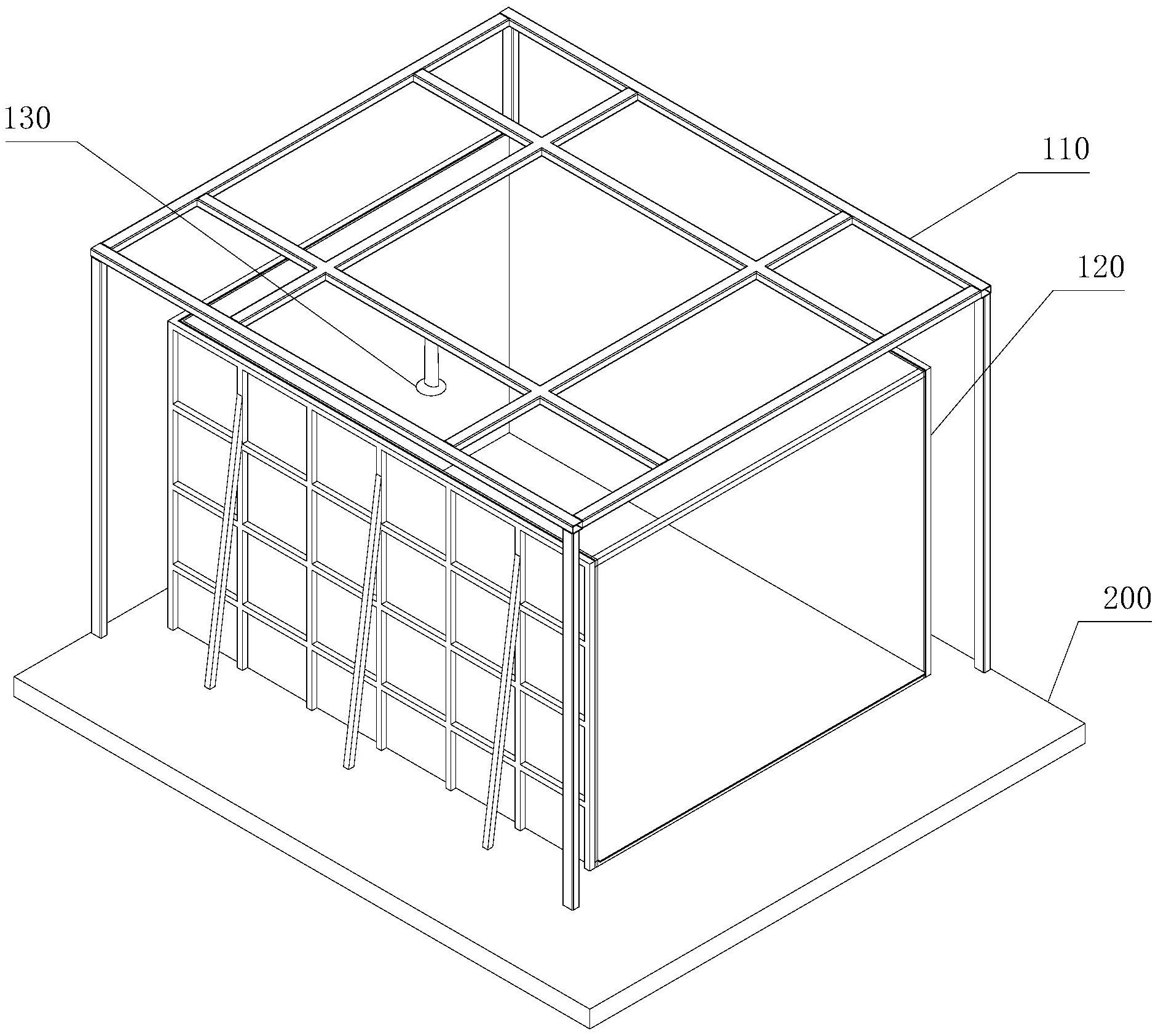 一种体验仓,涉及虚拟体验技术领域。该体验仓包括:被配置为用于与地面连接的支架结构;被配置为用于与地面连接的仓体结构;至少一部分所述仓体结构能够位于所述支架结构的内部,且所述仓体结构与所述支架结构间隔设置;所述仓体结构包括底板和若干个侧壁;所述底板和所有所述侧壁围合成仓体内腔;与所述支架结构连接的投影设备;所述投影设备位于所述仓体内腔内,且所述投影设备能够投影图像至所述底板和/或所述侧壁。本实用新型的目的在于提供一种体验仓,以在一定程度上解决现有技术中存在的体验仓在部署时不能够进行位置微调,以及在体验过程中因仓体内运动产生的共震会传导至投影设备的技术问题。