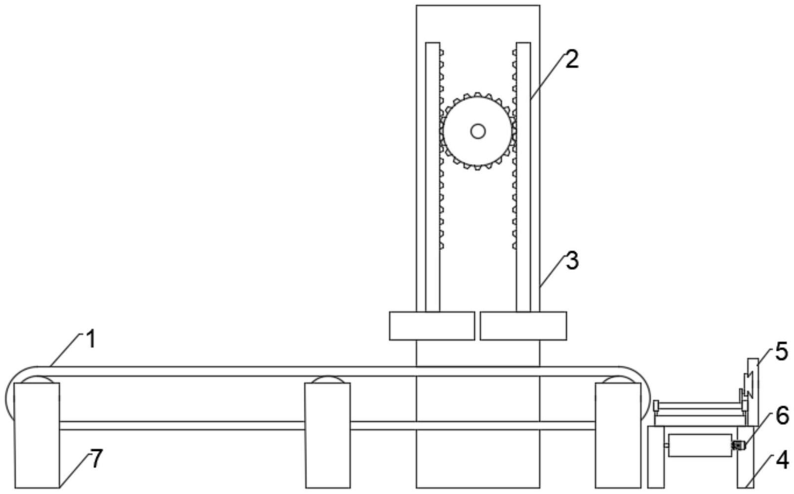 本实用新型涉及包装技术领域,具体涉及一种多列式多袋型柔性袋自动包装机,包括多个第一支撑板和多个第二支撑板。本实用新型克服了现有技术的不足,通过设置有热封剪切装置,在热封剪切装置的第一电机输出端固定连接齿轮,在齿轮两侧的连接杆下端分别螺纹连接热封口压板与剪切刀片,在连接杆侧面固定连接与齿轮对应的锯齿,连接杆侧面的滑杆与滑槽滑动连接,对包装袋进行缝合的同时可对膜边进行剪切,提高工作效率,通过设置有翻转装置,在翻转装置的第二支撑座侧面开设凹槽,第二电机输出端的螺纹杆与滑口侧壁转动连接,在螺纹杆上螺纹连接转动装置,转动装置与滑口和凹槽滑动连接,对包装带进行翻正,便于后续物料的装袋。