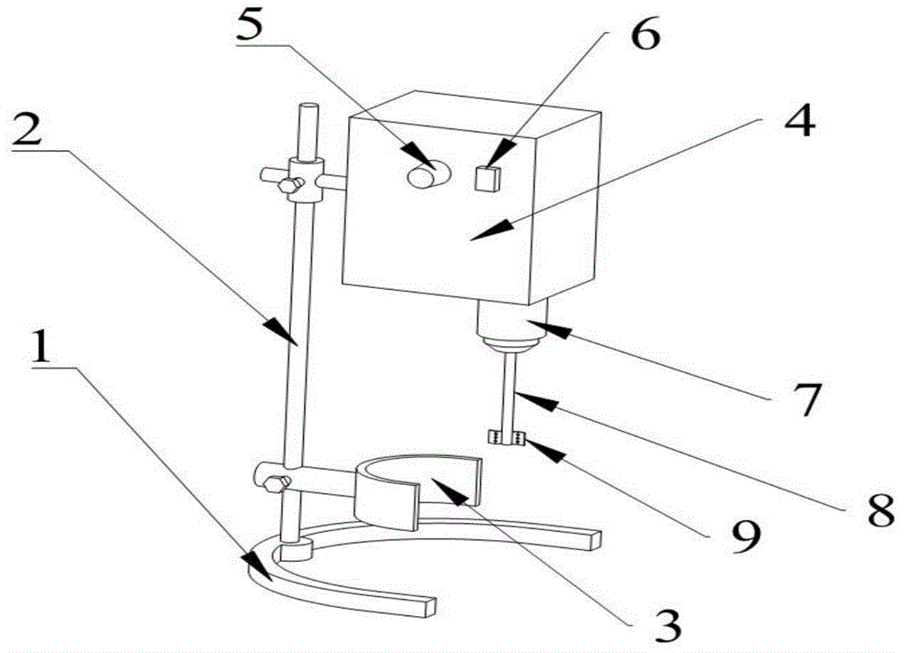 本实用新型涉及可拆卸式搅拌器,属于化妆品领域,主要解决在产品生产过程中容易出现搅拌不均匀的问题,所述立杆通过焊接与底座实现连接固定,所述立杆的上端部设有电机头,所述立杆的下端部与容器夹具实现螺纹固定,所述电机头为立式方形体,所述速度调节旋钮和开关分布在电机头的侧面,夹头通过焊接固定在电机头的底部,夹头底部设有容纳刀杆的螺纹孔,所述刀杆上端设有螺纹,刀杆的下端部设有刀片,本实用新型新颖独特,借助可拆卸式的设计结构,很好的满足其使用需求,解决了在产品生产过程中容易出现搅拌不均匀的情况,并且不能具体产品的要求安装不同形状的搅拌轴的问题,加快生产进度,保证生产质量,有利于生产产量提高。