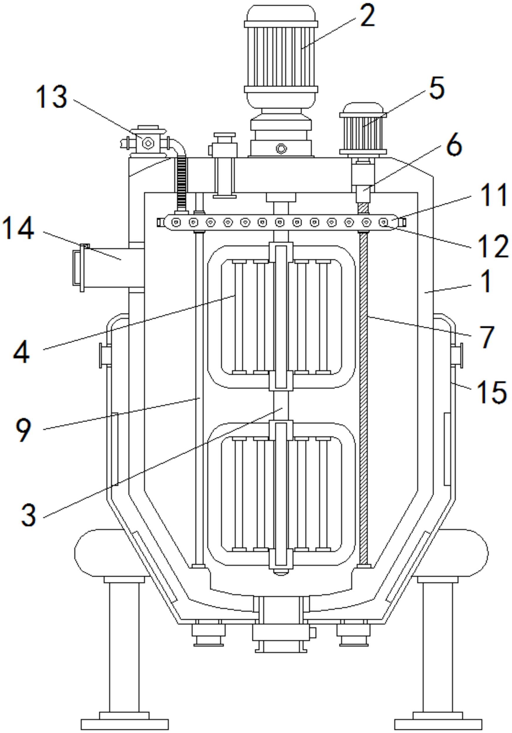 本实用新型涉及豌豆肽提取技术领域,且公开了一种用于豌豆肽提取的多功能提取罐,包括罐体,所述罐体的顶部固定安装有搅拌电机,所述搅拌电机的输出轴固定安装有轴杆,所述轴杆的外侧固定安装有两个搅拌器,所述罐体的顶部固定安装有驱动电机,所述驱动电机的输出轴固定连接有连接杆,所述连接杆的底端固定连接有丝杆,所述丝杆的外侧螺纹连接有丝块,所述罐体的内顶壁与内底壁之间固定安装有滑杆,所述滑杆的外侧滑动连接有滑块,所述滑块与丝块的相背一侧之间固定安装有水盘。该用于豌豆肽提取的多功能提取罐,可上下移动对罐体的内壁进行冲洗,冲洗效果好,该过程中可对罐体内部进行有效的清洗,清洗方便,从而提高了实用性。