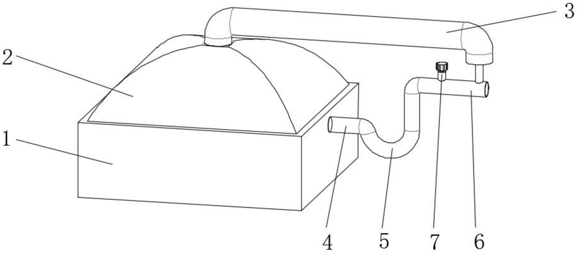 本实用新型公开了一种多功能螺旋藻养殖液碳源添加装置,涉及螺旋藻养殖技术领域。本实用新型包括培养基,所述培养基上方固定连接有防护罩,防护罩上方固定连接有循环通道,培养基一侧固定连接有进气管,进气管一端固定连接有U形管,U形管一端固定连接有输气管,输气管上方固定连接有开关装置,输气管内部固定连接有挡板一。本实用新型通过防护罩与循环通道之间的协作,使得未充分吸收的二氧化碳能够被再次吸收,提高了二氧化碳的利用率。