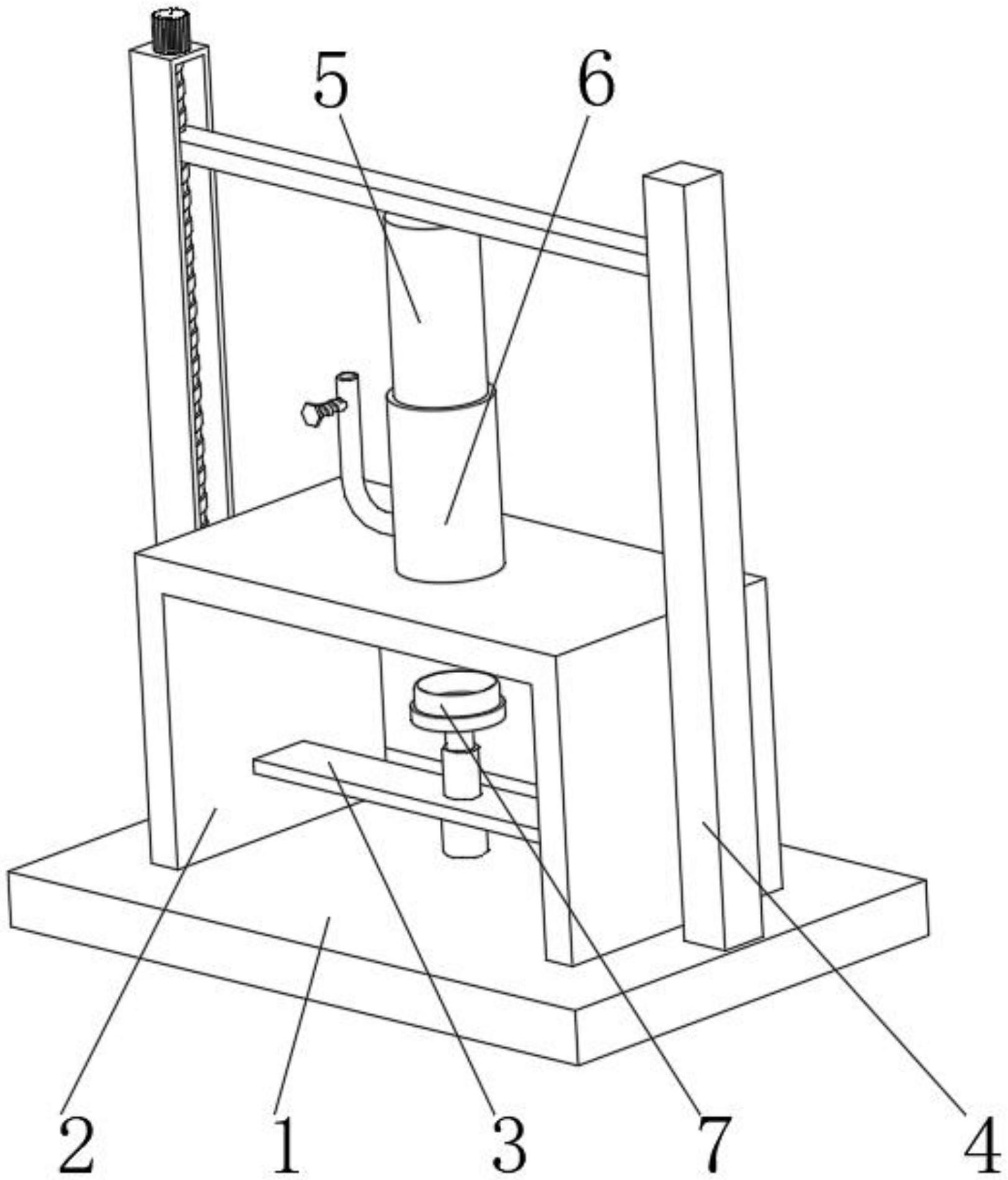 本实用新型公开了一种用于加工螺旋藻片的压片机,包括底座,所述底座的上端中部固定安装有支架,所述支架的内腔下部固定安装有横板,所述底座的上端左部中侧和上端右部中侧均固定安装有一个滑轨,两个所述滑轨的相对面共同设置有加工装置,所述支架的上端中部设置有密封装置,所述横板的上端中部设置有杀菌装置。本实用新型所述的一种用于加工螺旋藻片的压片机,将推杆电机的旋转运动转变为电动推杆的直线往复运动,当电动推杆延长时带动密封盖往上运动时使得密封装置处在密封状态,防止外部细菌的进入,通过紫外杀菌灯圈发出紫外光线对密封装置内部进行杀菌处理,从而防止螺旋藻片受到细菌污染。
