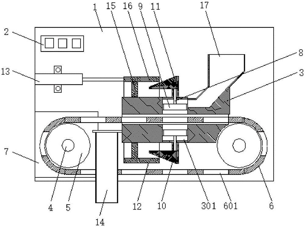 本实用新型公开了一种用于压片糖果生产的压片装置,包括立板,所述立板的前侧面上侧安装有控制开关,所述控制开关的输入端与外部电源的输出端电连接,所述立板的前侧面中部安装有料座,所述料座的中部设有水平方向的通孔,本用于压片糖果生产的压片装置,结构简单,使用方便,通过相对的两个压板进行冲压,挤出原料内的空气,从而形成紧密结合的片状糖果,加工时,两块压板同时运动,使得原料上下侧受压均匀稳定,有利于原料内空气的同步排出,保证压片糖果的密度均匀,不易发生裂缝或者断裂,配合带有料孔的皮带进行送料,实现压片糖果连续的生产和加工,运行稳定,方便进行检修,提高了片状糖果的生产效率。