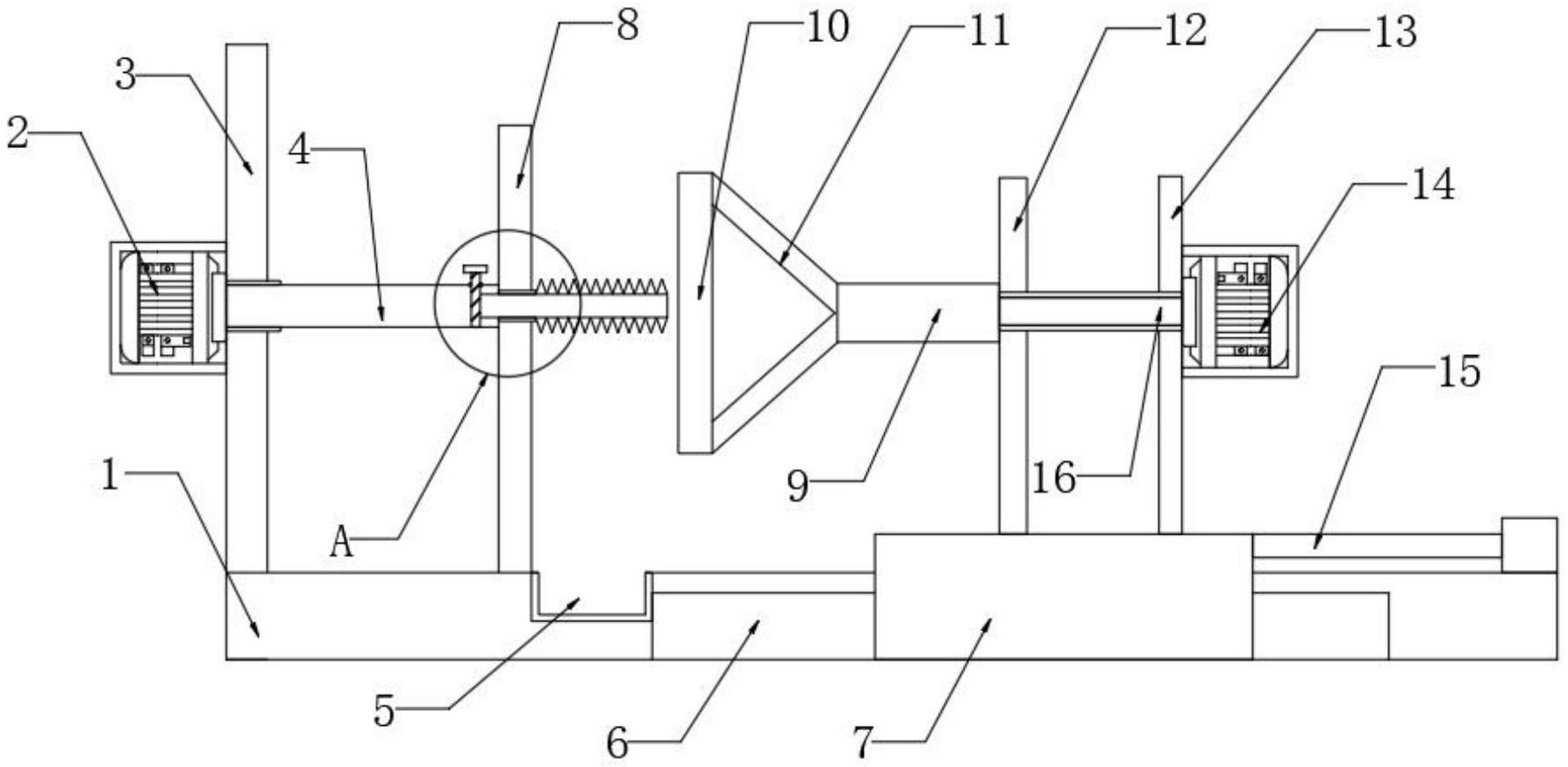 本实用新型公开了打磨机技术领域的一种橡胶边打磨机,包括加工台,所述加工台的顶端左侧固定连接有固定柱,所述固定柱的外侧面上设有电机一,所述电机一的输出端连接转轴,所述转轴通过轴承与固定杆的侧壁活动连接,所述转轴的侧端内腔活动连接打磨头,所述滑动台的上表面左侧固定连接竖板,所述竖板的左侧面固定连接有连接柱,所述连接柱的端面两侧焊接有连接杆,所述连接杆固定连接加固环的后侧端面上,所述滑动台的上表面右侧固定连接有竖杆,所述竖杆的外侧面设有电机二,本实用新型能够完成对不同花纹打磨头的更换,操作方便简单,适用范围广,加固环的设计,可以对不同大小的橡胶边进行固定连接,操作便捷,使用范围广,使用效果好。
