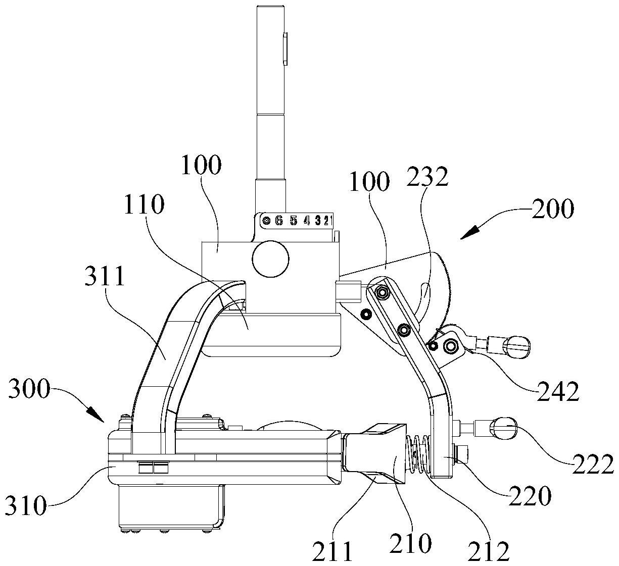 本申请公开了一种头部气动夹紧装置,该头部气动夹紧装置包括:旋转座;前额夹紧组件,其包括固定架和锁紧座,锁紧座与旋转座转动相连,锁紧座与旋转座可进行转动锁紧,固定架与锁紧座相连,固定架设置有前额垫;后脑支撑组件,其包括支撑座、气垫和气囊袋,支撑座与旋转座固定连接,气垫和气囊袋分别与支撑座相连,气垫和气囊袋通过气管相连,气垫从支撑座面向前额垫的一侧露出,气囊袋部分从支撑座露出。通过前额夹紧组件与后脑支撑组件配合来夹紧头部,后脑支撑组件包括气垫和气囊袋,通过按压气囊袋为气垫充气,使得气垫贴合使用者后脑勺的形状,增加了后脑支撑组件与使用者后脑勺的接触面积,提高了头部气动夹紧装置夹紧头部的可靠性。