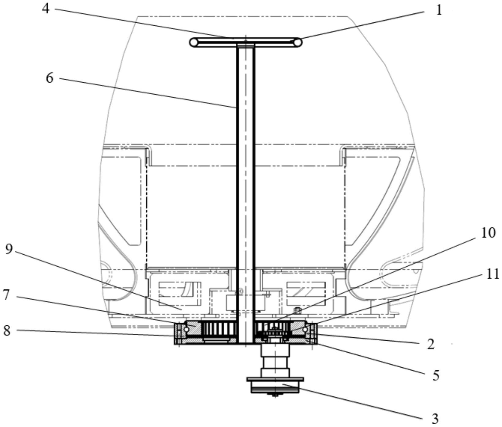 本实用新型涉及游乐设备技术领域,尤其涉及一种转转杯自转机构。所述转转杯自转机构包括旋转系统,所述旋转系统包括旋转把手、回转支承和制动装置,所述旋转把手通过所述回转支承与座舱配合连接,所述回转支承与所述制动装置通过齿轮啮合连接。该技术方案通过回转支承与旋转把手、座舱的特殊配合连接的设计,能够实现旋转平稳、连接稳定、承载能力强、噪音低等技术效果,且回转支承的封闭性好、便于润滑,大大减少了后期的维护工作;其次,回转支承与制动装置的配合,能够实现缓慢或紧急停止,安全性更高;同时,该旋转系统可以实现座舱自由、安全平稳地自转,既解决了转转杯旋转不平稳的问题,又提高了安全性,给游客带来了更愉快的游玩体验。